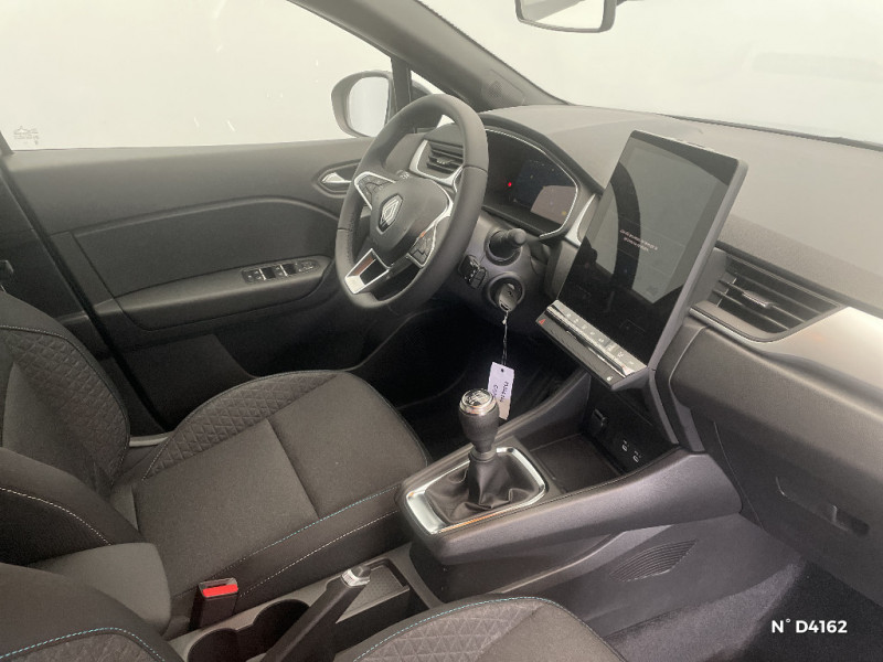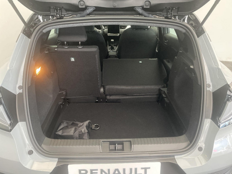 Appel d'Urgence Renault / Volant en tissus / Alerte détection de fatigue / Alerte distance de sécurité - Information dans tableau de bord / Alerte oubli des ceintures de sécurité aux 5 places / Alerte sortie de voie / Antenne requin / Condamnation centralisée des portes avec télécommande et condamnation des portes en roulant / Console centrale de rangement avec accoudoir / Contrôle de la traction (TCS) / Coques de rétroviseurs noir/teinte caisse / Eclairage AV et AR Full LED Pure Vision / Badges noir brillant / Boîte de vitesse manuelle 6 rapports / Ceinture centrale AR 3 points / Enjoliveurs 17'' Nymphea / Feux AR LED avec signature en forme de "C" / Harmonie beige / Hayon AR manuel / Indicateur de changement de vitesse / Kit de gonflage et de réparation des pneumatiques / Liseuses LED / Maintenance connectée, incluse pendant 8 ans / Mise à jour système (via firmware over the air FOTA), inclus pendant 5 ans / OpenR link 10,4" access display audio avec tableau de bord avec écran numérique et personlisable 7" / Pack connected driving, inclus pendant 5 ans / Pack contrôle à distance (via l'application My Renault), inclus pendant 5 ans / Poignées de portes ton caisse / Répétiteurs latéraux de changement de direction / Système ISOFIX (i-Size) aux places latérales AR et passager AV