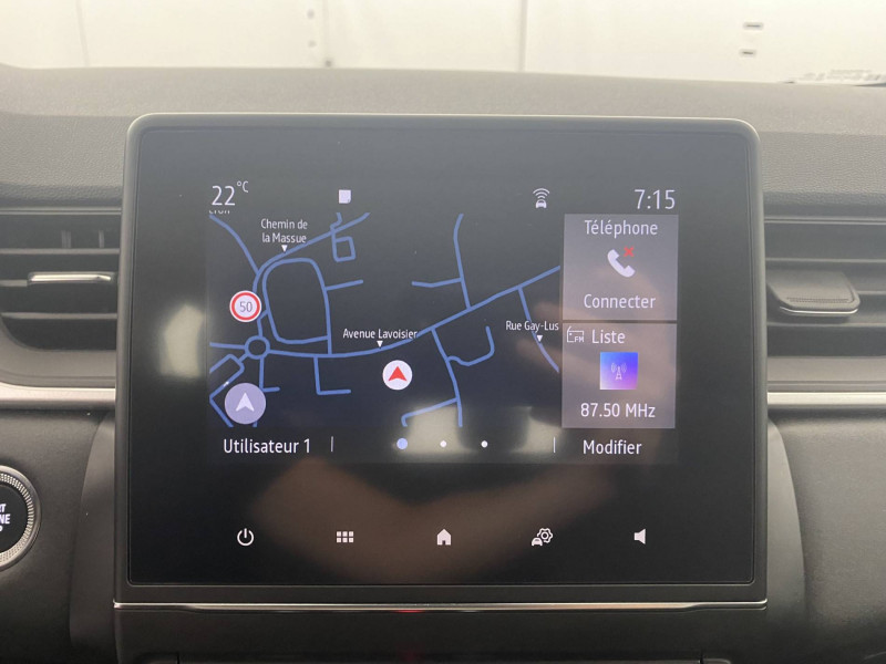 Aide au freinage actif d'urgence avec détection piétons (AEBS City + Inter Urbain + Piéton): / EASY LINK avec écran 7" et navigation: / Eclairage AV et AR Full LED Pure Vision: / Feux AR LED avec signature en forme de "C": / Alerte distance de sécurité - Information dans tableau de bord: / Alerte oubli des ceintures de sécurité aux 5 places: / Appel d'Urgence Renault: / Ceinture centrale arrière 3 points: / Condamnation centralisée des portes avec télécommande et condamnation des portes en roulant: / Console centrale de rangement avec accoudoir: / Enjoliveurs 17'' Nymphea: / Harmonie intérieure foncée: / Indicateur de changement de vitesse: / Kit de gonflage et de réparation des pneumatiques: / Poignées de portes ton caisse: / Répétiteurs latéraux de changement de direction: / Système ISOFIX (i-Size) aux places latérales AR et passager AV: / Tableau de bord avec écran numérique 4,2'' et compteurs analogiques: / Volant TEP: / Sellerie Tissu Noir / Gris avec rayures: / / Véhicules équivalents: 2008 - C4 Cactus - Juke
