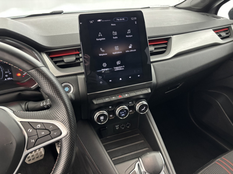 Bacs de portes avant / Boucliers AV et AR couleur caisse / Ceinture de vitrage chromée / Ceintures avant ajustables en hauteur / Commande Mode ECO / Compte tours / Contrôle de freinage en courbe / Détecteur de sous-gonflage / Echappement à double sortie / Eclairage d'ambiance / Filtre à Pollen / Frein stationnement électrique / Indicateur de limitation de vitesse / Lampe de coffre / Ouverture des vitres séquentielle / Pédalier sport / Phares avant LED / Plafonnier central AV et AR à LED / Poignées ton carrosserie / Pommeau de levier vitesse en cuir / Porte-gobelets avant / Radar de distance / Rétroviseur intérieur électrochrome / Sortie d'échappement chromée / Système anti-éblouissement / Système de maintien du véhicule en côte / Témoin de bouclage des ceintures AV / Tissu Spéc R.S. Line Noir liserés rouge / Verrouillage auto. des portes en roulant / / Véhicules équivalents: 2008 - C4 Cactus - Juke