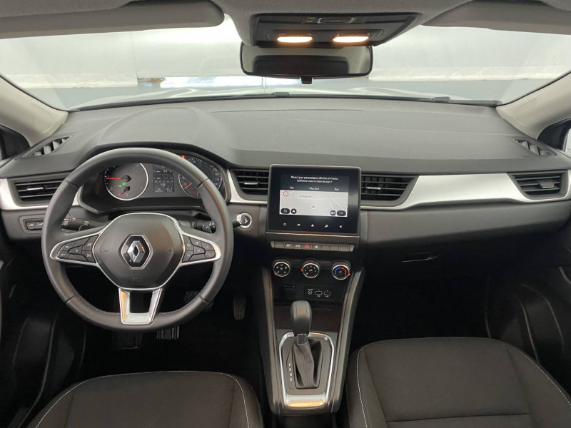 Aide au freinage actif d'urgence avec détection piétons (AEBS City + Inter Urbain + Piéton): / EASY LINK avec écran 7" et navigation: / Eclairage AV et AR Full LED Pure Vision: / Feux AR LED avec signature en forme de "C": / Alerte distance de sécurité - Information dans tableau de bord: / Alerte oubli des ceintures de sécurité aux 5 places: / Appel d'Urgence Renault: / Ceinture centrale arrière 3 points: / Condamnation centralisée des portes avec télécommande et condamnation des portes en roulant: / Console centrale de rangement avec accoudoir: / Enjoliveurs 17'' Nymphea: / Harmonie intérieure foncée: / Indicateur de changement de vitesse: / Kit de gonflage et de réparation des pneumatiques: / Répétiteurs latéraux de changement de direction: / Système ISOFIX (i-Size) aux places latérales AR et passager AV: / Tableau de bord avec écran numérique 4,2'' et compteurs analogiques: / Volant TEP: / Sellerie Tissu Noir / Gris avec rayures: / / Véhicules équivalents: 2008 - C4 Cactus - Juke