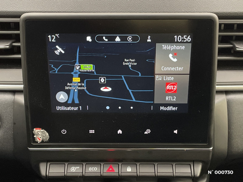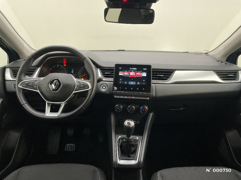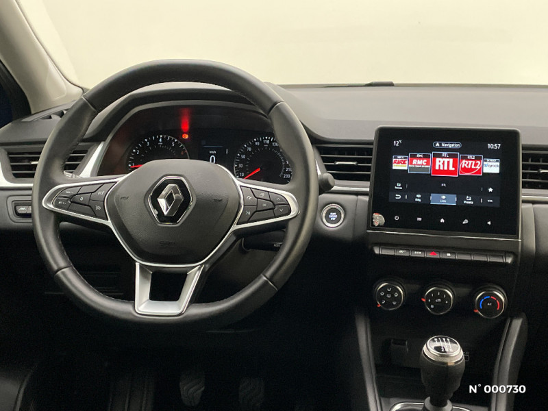 Poignées de portes ton caisse / Console centrale de rangement avec accoudoir / Répétiteurs latéraux de changement de direction / Harmonie beige / Condamnation centralisée des portes avec télécommande et condamnation des portes en roulant / Kit de gonflage et de réparation des pneumatiques / Alerte oubli des ceintures de sécurité aux 5 places / Alerte distance de sécurité - Information dans tableau de bord / Feux AR LED avec signature en forme de "C" / Appel d'Urgence Renault / Système ISOFIX (i-Size) aux places latérales AR et passager AV / Antenne requin / Eclairage AV et AR Full LED Pure Vision / Coques de rétroviseurs noir/teinte caisse / Enjoliveurs 17'' Nymphea / Volant en tissus / Alerte détection de fatigue / Liseuses LED / Badges noir brillant / OpenR link 10,4'' access display audio avec tableau de bord avec écran numérique et personlisable 7" / Alerte sortie de voie / Roues tôlées 17" / Ceinture centrale AR 3 points / Peinture mono-ton / Indicateur de changement de vitesse / Hayon manuel