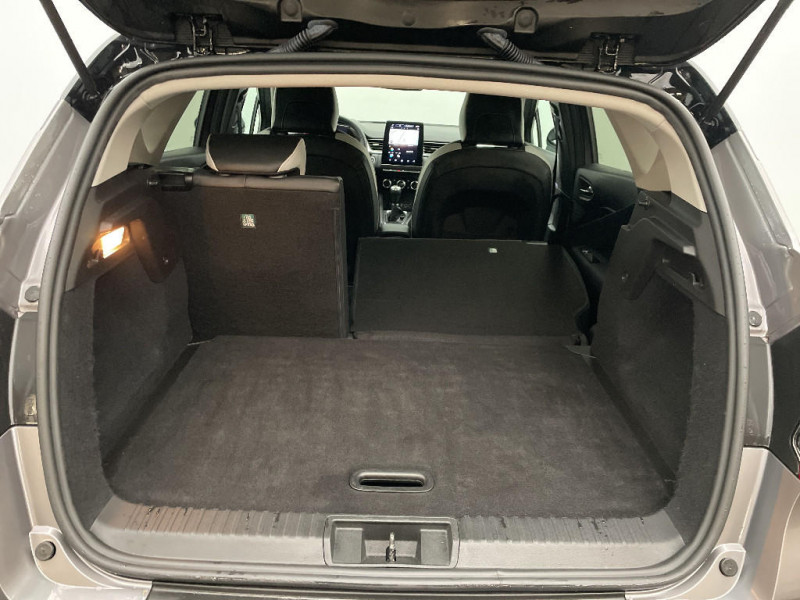 Peinture mono-ton / Indicateur de changement de vitesse / Renault Multi-Sense (choix de modes de conduite) / Poignées de portes ton caisse / Console centrale de rangement avec accoudoir / Compartimentage de coffre / Répétiteurs latéraux de changement de direction / Commutation automatique des feux de route/croisement / Harmonie beige / Rétroviseur intérieur électrochrome / Ceinture centrale arrière 3 points / EASY LINK avec écran 7" et navigation / Eclairage AV et AR Full LED Pure Vision / Tableau de bord avec écran numérique et personnalisable 7" / Condamnation centralisée des portes avec télécommande et condamnation des portes en roulant / Kit de gonflage et de réparation des pneumatiques / Alerte oubli des ceintures de sécurité aux 5 places / Alerte distance de sécurité - Information dans tableau de bord / Jantes alliage 18'' Pasadena diamantées gris erbé / Feux AR LED avec signature en forme de "C" et animation 3D / Sellerie TEP / tissu avec jonc gris / Navigation / Appel d'Urgence Renault / Système ISOFIX (i-Size) aux places latérales AR et passager AV / Pneus à faible résistance au roulement / Liseuses AV à LED / Freinage actif d'urgence avec détection piétons et cyclistes (AEBS City + Inter Urbain+ Piéton) / Sans prestation Bose / Feux arrières 3D intermédiaire / Alarme de ceinture de sécurité (Réglementation SBR) / Alternateur renforcé / Evolution technique Licence Arkamis / Evolution de gamme 2 (MC2)