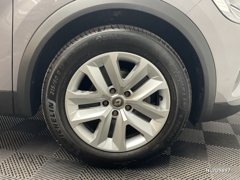 Répétiteurs latéraux de changement de direction / Harmonie intérieure foncée / Condamnation centralisée des portes avec télécommande et condamnation des portes en roulant / Kit de gonflage et de réparation des pneumatiques / Alerte oubli des ceintures de sécurité aux 5 places / Console centrale de rangement avec accoudoir / Alerte distance de sécurité - Information dans tableau de bord / Peinture opaque / Sellerie Tissu Noir / Gris avec rayures / EASY LINK avec écran 7" : système multimédia compatible Android Auto et Apple CarPlay, Bluetooth / Aide au freinage actif d'urgence avec détection piétons (AEBS City + Inter Urbain + Piéton) / Peinture mono-ton / Tableau de bord avec écran numérique 4,2'' et compteurs analogiques / Feux AR LED avec signature en forme de "C" / Système ISOFIX (i-Size) aux places latérales AR et passager AV / Enjoliveurs 17'' Nymphea / Indicateur de changement de vitesse / Eclairage AV et AR Full LED Pure Vision / Appel d'Urgence Renault / Ceinture centrale AR 3 points
