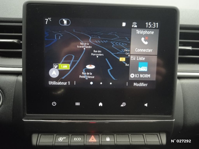 EASY LINK avec écran 7" avec réplication smartphone sans fil (compatible android auto et Apple CarPlay) / Ceinture centrale arrière 3 points / Indicateur de changement de vitesse / Poignées de portes ton caisse / Commutation automatique des feux de route/croisement / Harmonie beige / Eclairage AV et AR Full LED Pure Vision / Tableau de bord avec écran numérique 4,2'' et compteurs analogiques / Condamnation centralisée des portes avec télécommande et condamnation des portes en roulant / Kit de gonflage et de réparation des pneumatiques / Alerte oubli des ceintures de sécurité aux 5 places / Alerte distance de sécurité - Information dans tableau de bord / Navigation / Appel d'Urgence Renault / Système ISOFIX (i-Size) aux places latérales AR et passager AV / Freinage actif d'urgence avec détection piétons et cyclistes (AEBS City + Inter Urbain+ Piéton) / Alternateur renforcé / Roue alliage 17" / Feux AR 3D / Volant en tissus / Sans chargeur à induction / Classe energetique 1 / Console centrale de rangement avec accoudoir / Répétiteurs latéraux de changement de direction