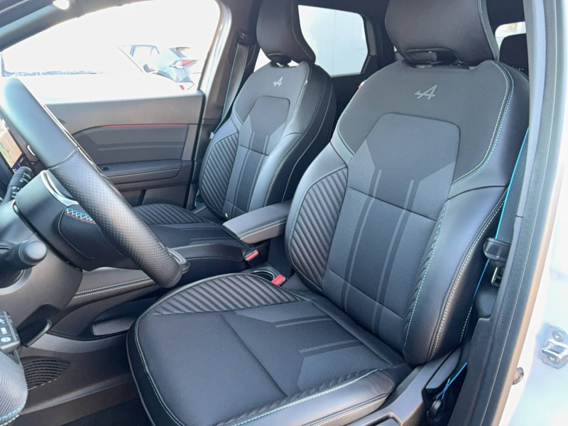 Aide au parking AV/AR et latéral / Alerte détection de fatigue / Alerte distance de sécurité - Information dans tableau de bord / Alerte oubli des ceintures de sécurité aux 5 places / Alerte sortie de voie / Antenne requin / Appel d'Urgence Renault / Cartographie Standard / Ceinture centrale AR 3 points / Condamnation centralisée des portes avec télécommande et condamnation des portes en roulant / Console flottante et e-shifter / Coques de rétroviseurs noir/teinte caisse / Design esprit Alpine extérieur / Design esprit Alpine intérieur / Eclairage AV et AR Full LED Pure Vision / Feux AR LED avec signature en forme de ''C'' et animation 3D / Frein de parking électrique avec fonction Auto-Hold / Harmonie esprit Alpine / Hayon AR manuel / Indicateur de changement de vitesse / Kit de gonflage et de réparation des pneumatiques / Miroirs de courtoisie rétroéclairés / OpenR link 10,4"avec navigation et services Google et tableau de bord numérique 10" / Peinture mono-ton / Plancher de coffre mobile / Poignées de portes ton caisse / Renault Multi-sense / Répétiteurs latéraux de changement de direction / Rétroviseur intérieur électrochrome Frameless / Sellerie Esprit Alpine / Système ISOFIX (i-Size) aux places latérales AR et passager AV / Système multimédia openR link 10.4" avecGoogle intégré / Volant chauffant / Volant textile enduit grainé