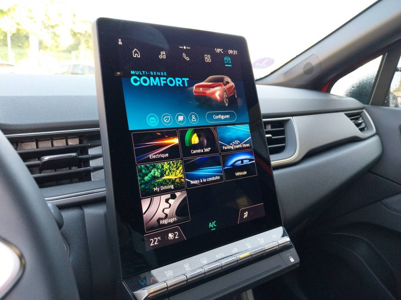 Aide au parking AV/AR et latéral / Alerte détection de fatigue / Alerte distance de sécurité - Information dans tableau de bord / Alerte oubli des ceintures de sécurité aux 5 places / Alerte sortie de voie / Antenne requin / Appel d'Urgence Renault / Boîte de vitesse automatique 4 rapports / Cartographie Standard / Ceinture centrale AR 3 points / Condamnation centralisée des portes avec télécommande et condamnation des portes en roulant / Console centrale de rangement avec accoudoir / Contrôle de la traction (TCS) / Coques de rétroviseurs noir/teinte caisse / Eclairage AV et AR Full LED Pure Vision / Feux AR LED avec signature en forme de ''C'' et animation 3D / Frein de parking électrique avec fonction Auto-Hold / Harmonie noire / Hayon AR manuel / Indicateur de changement de vitesse / Jantes Aluminium 18'' Black Hole / Kit de gonflage et de réparation des pneumatiques / Liseuses AV à LED / OpenR link 10,4"avec navigation et services Google et tableau de bord numérique 10" / Plancher de coffre mobile / Poignées de portes ton caisse / Renault Multi-sense / Répétiteurs latéraux de changement de direction / Rétroviseur intérieur électrochrome / Sellerie Techno / Système ISOFIX (i-Size) aux places latérales AR et passager AV / Système multimédia openR link 10.4" avecGoogle intégré / Volant en tissus / / Véhicules équivalents: 2008 - C4 Cactus - Juke