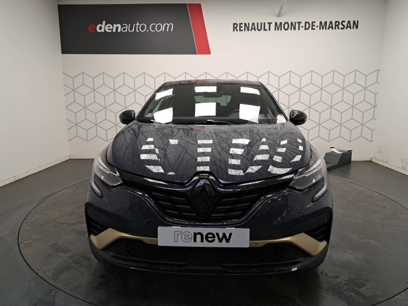 Alerte distance de sécurité - Information dans tableau de bord / Alerte oubli des ceintures de sécurité aux 5 places / Antenne requin / Appel d'Urgence Renault / Badges noir brillant / Badging E-Tech Gold / Ceinture centrale AR 3 points / Commutation automatique des feux de route/croisement / Compartiment de coffre / Condamnation centralisée des portes avec télécommande et condamnation des portes en roulant / Console centrale volante, avec levier de vitesse e-shifter et accoudoir central / EASY LINK avec écran 9.3" avec réplication navigation et smartphone sans fil / Eclairage AV et AR Full LED Pure Vision / Feux AR LED avec signature en forme de "C" et animation 3D / Freinage actif d'urgence avec détection piétons et cyclistes (AEBS City + Inter Urbain+ Piéton) / Frein de parking électrique avec fonction Auto-Hold / Harmonie gris chiné / Indicateur de changement de vitesse / Jantes alliage 18" spécifique E-Tech engineered / Kit de gonflage et de réparation des pneumatiques / Navigation / Pack Look warm titanium / Personnalisation intérieur E-Tech Engineered / Pneus à faible résistance au roulement / Poignées de portes ton caisse / Prestation R.S. Line Extérieure / Prestation R.S. Line Intérieure / Prestation R.S. Line Signature / Prestation Sport / Renault Multi-Sense (choix de modes de conduite) / Répétiteurs latéraux de changement de direction / Rétroviseur intérieur électrochrome Frameless / Sellerie spécifique E-Tech Engineered / Système ISOFIX (i-Size) aux places latérales AR et passager AV / Tableau de bord avec écran numérique et personnalisable 10"