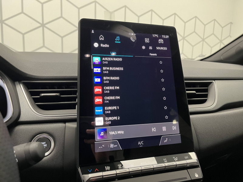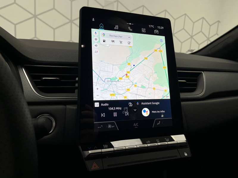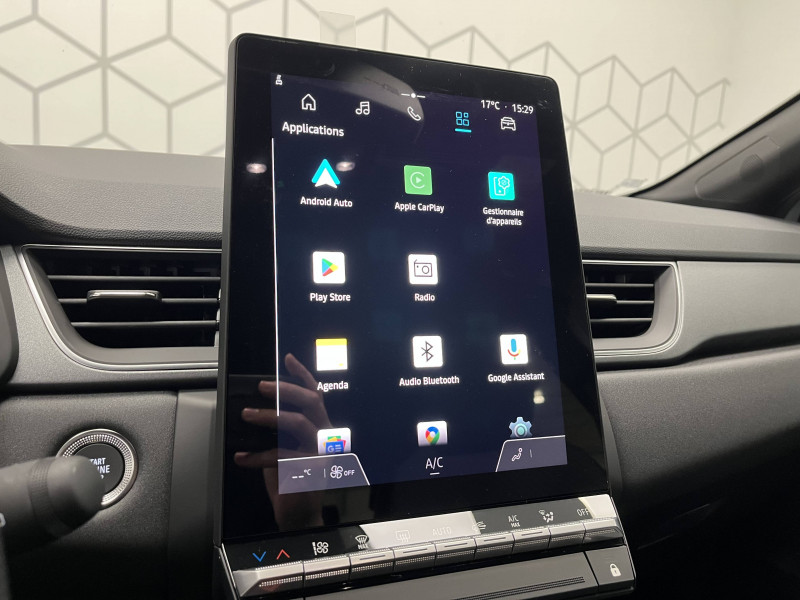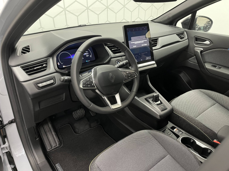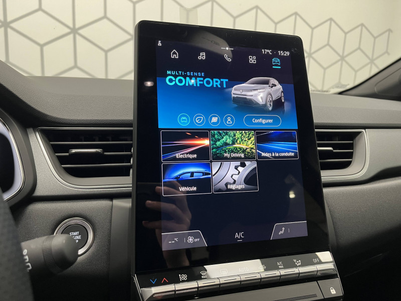 Aide au parking AV/AR et latéral / Alerte détection de fatigue / Alerte distance de sécurité - Information dans tableau de bord / Alerte oubli des ceintures de sécurité aux 5 places / Alerte sortie de voie / Antenne requin / Appel d'Urgence Renault / Boîte de vitesse hybride multimode 6 rapports / Cartographie Standard / Ceinture centrale AR 3 points / Condamnation centralisée des portes avec télécommande et condamnation des portes en roulant / Console centrale de rangement avec accoudoir / Contrôle de la traction (TCS) / Coques de rétroviseurs noir/teinte caisse / Eclairage AV et AR Full LED Pure Vision / Feux AR LED avec signature en forme de ''C'' et animation 3D / Frein de parking électrique avec fonction Auto-Hold / Harmonie noire / Hayon AR manuel / Indicateur de changement de vitesse / Jantes Aluminium 18'' / Kit de gonflage et de réparation des pneumatiques / Liseuses AV à LED / Maintenance connectée, incluse pendant 8 ans / Mise à jour système (via firmware over the air FOTA), inclus pendant 5 ans / OpenR link 10,4"avec navigation et services Google et tableau de bord numérique 10" / Pack connected driving, inclus pendant 5 ans / Pack contrôle à distance (via l'application My Renault), inclus pendant 5 ans / Plancher de coffre mobile / Poignées de portes ton caisse / Renault Multi-sense / Répétiteurs latéraux de changement de direction / Rétroviseur intérieur électrochrome / Sellerie Techno / Système ISOFIX (i-Size) aux places AR (latérales) / Système multimédia openR link 10.4" avecGoogle intégré / Volant textile enduit grainé