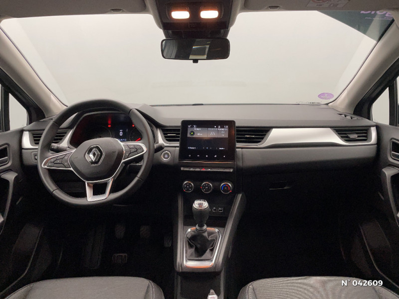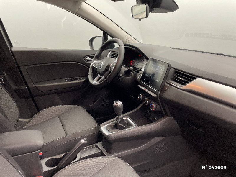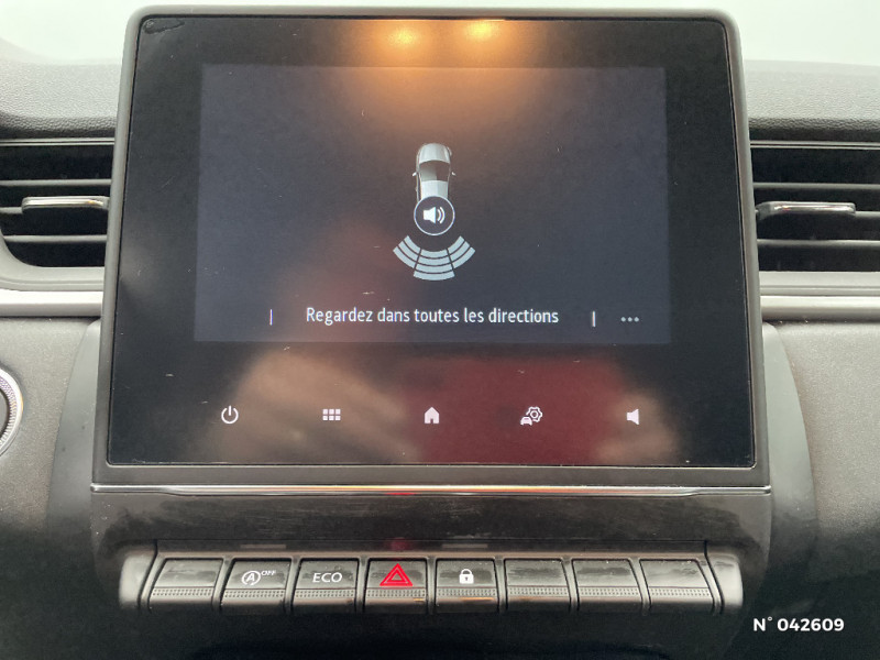 Tableau de bord avec écran numérique 4,2'' et compteurs analogiques / Condamnation centralisée des portes avec télécommande et condamnation des portes en roulant / Kit de gonflage et de réparation des pneumatiques / Alerte oubli des ceintures de sécurité aux 5 places / Poignées de portes ton caisse / Console centrale de rangement avec accoudoir / Répétiteurs latéraux de changement de direction / Commutation automatique des feux de route/croisement / Harmonie beige / Eclairage AV et AR Full LED Pure Vision / Ceinture centrale arrière 3 points / Indicateur de changement de vitesse / Alerte distance de sécurité - Information dans tableau de bord / Navigation / Appel d'Urgence Renault / Système ISOFIX (i-Size) aux places latérales AR et passager AV / Freinage actif d'urgence avec détection piétons et cyclistes (AEBS City + Inter Urbain+ Piéton) / Alternateur renforcé / Roue alliage 17" / Feux AR 3D / Volant en tissus / Sans chargeur à induction / Classe energetique 1 / EASY LINK avec écran 7" avec réplication smartphone sans fil (compatible android auto et Apple CarPlay)