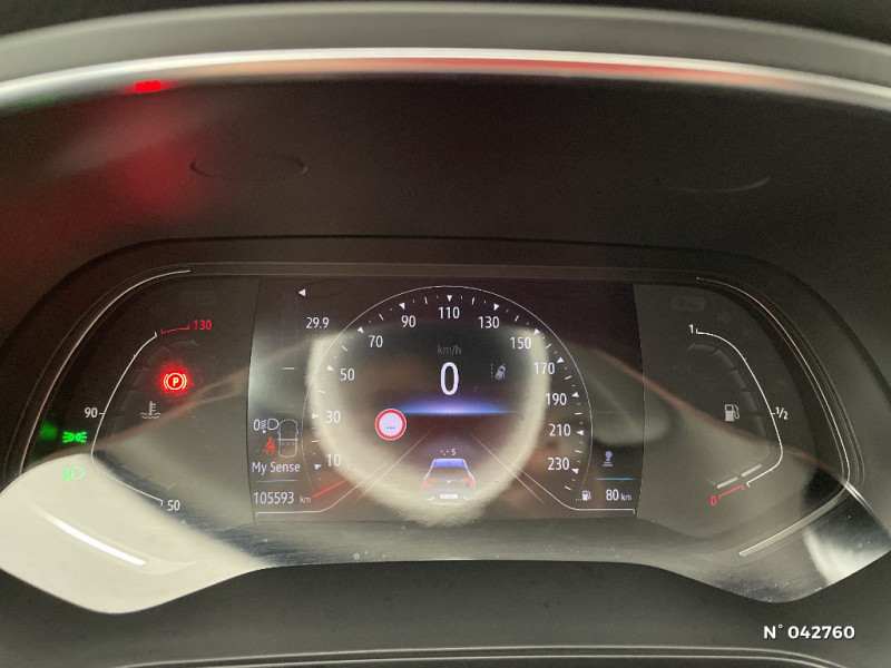 EASY LINK avec écran 7" et navigation / Eclairage AV et AR Full LED Pure Vision / Tableau de bord avec écran numérique et personnalisable 7" / Condamnation centralisée des portes avec télécommande et condamnation des portes en roulant / Kit de gonflage et de réparation des pneumatiques / Alerte oubli des ceintures de sécurité aux 5 places / Alerte distance de sécurité - Information dans tableau de bord / Jantes alliage 18'' Pasadena diamantées gris erbé / Feux AR LED avec signature en forme de "C" et animation 3D / Harmonie foncé / Sellerie TEP / tissu avec jonc gris / Console centrale de rangement avec accoudoir / Peinture bi-ton (montants de pare-brise, coques de rétroviseurs, toit) / Répétiteurs latéraux de changement de direction / Commutation automatique des feux de route/croisement / Aide au freinage actif d'urgence avec détection piétons (AEBS City + Inter Urbain + Piéton) / Rétroviseur intérieur électrochrome / Ceinture centrale arrière 3 points / Peinture opaque / Indicateur de changement de vitesse / Renault Multi-Sense (choix de modes de conduite) / Système ISOFIX (i-Size) aux places latérales AR et passager AV / Appel d'Urgence Renault