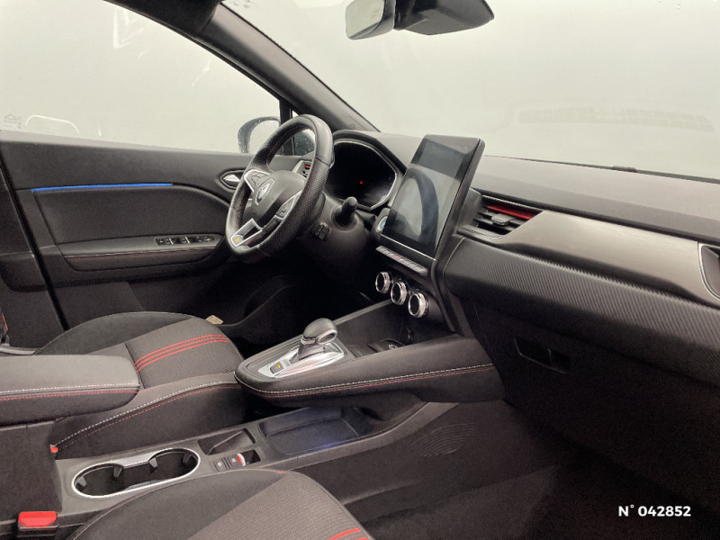 Jantes alliage 18'' Le Castellet R.S. Line / Prestation R.S. Line Signature / Roue alliage 18" / Sellerie spécifique R.S. Line / Prestation R.S. Line Extérieure / EASY LINK avec écran 9.3" et navigation répliquée dans tableau de bord / Prestation R.S. Line Intérieure / Freinage actif d'urgence avec détection piétons et cyclistes (AEBS City + Inter Urbain+ Piéton) / Sans prestation Bose / Alarme de ceinture de sécurité (Réglementation SBR) / Evolution technique Licence Arkamis / Tableau de bord avec écran numérique et personnalisable 10" / Evolution de gamme 2 (MC2) / Peinture opaque / Indicateur de changement de vitesse / Renault Multi-Sense (choix de modes de conduite) / Poignées de portes ton caisse / Prestation RS-Line interieur / Eclairage AV et AR Full LED Pure Vision / Condamnation centralisée des portes avec télécommande et condamnation des portes en roulant / Console centrale volante, avec levier de vitesse e-shifter et accoudoir central / Rétroviseur intérieur électrochrome Frameless / Kit de gonflage et de réparation des pneumatiques / Alerte oubli des ceintures de sécurité aux 5 places / Alerte distance de sécurité - Information dans tableau de bord / Feux AR LED avec signature en forme de "C" et animation 3D / Navigation / Appel d'Urgence Renault / Compartimentage de coffre / Peinture bi-ton (montants de pare-brise, coques de rétroviseurs, toit) / Répétiteurs latéraux de changement de direction / Commutation automatique des feux de route/croisement / Prestation RS-Line exterieur / Système ISOFIX (i-Size) aux places latérales AR et passager AV / Antenne requin / Pneus à faible résistance au roulement / Harmonie noire / Ceinture centrale arrière 3 points