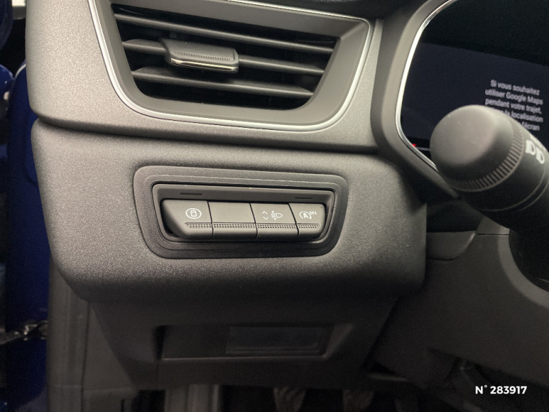 Frein de parking électrique avec fonction Auto-Hold / Sans pontets AR / Volant en tissus / Alerte détection de fatigue / OpenR link 10,4''avec navigation et services Google et tableau de bord numérique 10" / Alerte sortie de voie / Sellerie Techno / Système multimédia openR link 10.4" avecGoogle intégré / Plancher de coffre mobile / Contrôle de la traction (TCS) / Boîte de vitesse manuelle 6 rapports / Jantes Aluminium 18'' Black Hole / Ceinture centrale AR 3 points / Indicateur de changement de vitesse / Hayon manuel / Poignées de portes ton caisse / Console centrale de rangement avec accoudoir / Répétiteurs latéraux de changement de direction / Cartographie Standard / Feux AR LED avec signature en forme de ''C'' et animation 3D / Coques de rétroviseurs noir/teinte caisse / Harmonie noire / Condamnation centralisée des portes avec télécommande et condamnation des portes en roulant / Kit de gonflage et de réparation des pneumatiques / Alerte oubli des ceintures de sécurité aux 5 places / Alerte distance de sécurité - Information dans tableau de bord / Appel d'Urgence Renault / Système ISOFIX (i-Size) aux places latérales AR et passager AV / Antenne requin / Aide au parking AV/AR et latéral / Eclairage AV et AR Full LED Pure Vision / Renault Multi-sense / Liseuses AV à LED / Rétroviseur intérieur électrochrome
