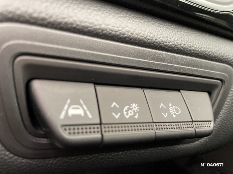 Navigation / Appel d'Urgence Renault / Système ISOFIX (i-Size) aux places latérales AR et passager AV / Antenne requin / Pneus à faible résistance au roulement / Harmonie noire / Freinage actif d'urgence avec détection piétons et cyclistes (AEBS City + Inter Urbain+ Piéton) / Sans prestation Bose / Feux arrières 3D intermédiaire / Evolution aérodynamique / Badges spécifiques SL Rive Gauche / Evolution de gamme 2 (MC2) / Jantes alliage 18'' Pasadena diamantées noir spécifiques SL Rive Gauche / Sellerie spécifique SL Rive Gauche / Classe energetique C / Evolution de gamme MC4 / Harmonie gris chiné / Frein de parking électrique avec fonction Auto-Hold / Sans pontets AR / Feux AR 3D / Volant en tissus / Liseuses LED / Sans evolution techniqiue FM2 / Alerte oubli des ceintures de sécurité aux 5 places / Sans chargeur à induction / Classe energetique 1 / EASY LINK avec écran 7" avec réplication smartphone sans fil (compatible android auto et Apple CarPlay) / Commutation automatique des feux de route/croisement / EASY LINK avec écran 7" et navigation / Eclairage AV et AR Full LED Pure Vision / Tableau de bord avec écran numérique et personnalisable 7" / Condamnation centralisée des portes avec télécommande et condamnation des portes en roulant / Peinture Bleu Marine Fumé / Toit Noir Etoilé / Kit de gonflage et de réparation des pneumatiques / Répétiteurs latéraux de changement de direction / Rétroviseur intérieur électrochrome / Ceinture centrale arrière 3 points / Indicateur de changement de vitesse / Renault Multi-Sense (choix de modes de conduite) / Poignées de portes ton caisse / Console centrale de rangement avec accoudoir / Compartimentage de coffre / Peinture bi-ton (montants de pare-brise, coques de rétroviseurs, toit) / Alerte distance de sécurité - Information dans tableau de bord