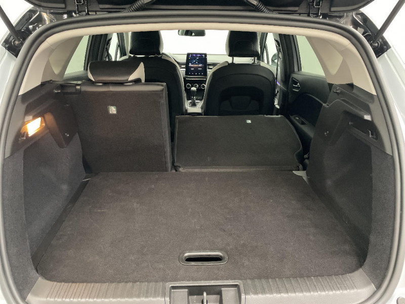 Compartimentage de coffre / Antenne requin / Pneus à faible résistance au roulement / Freinage actif d'urgence avec détection piétons et cyclistes (AEBS City + Inter Urbain+ Piéton) / Alternateur renforcé / Frein de parking électrique avec fonction Auto-Hold / Feux AR 3D / Volant en tissus / Sans chargeur à induction / Classe energetique 1 / EASY LINK avec écran 7" avec réplication smartphone sans fil (compatible android auto et Apple CarPlay) / Sellerie tissu avec jonc gris / Navigation / Appel d'Urgence Renault / Rétroviseur intérieur électrochrome / Ceinture centrale arrière 3 points / Répétiteurs latéraux de changement de direction / Commutation automatique des feux de route/croisement / Harmonie beige / Eclairage AV et AR Full LED Pure Vision / Tableau de bord avec écran numérique et personnalisable 7" / Condamnation centralisée des portes avec télécommande et condamnation des portes en roulant / Kit de gonflage et de réparation des pneumatiques / Alerte oubli des ceintures de sécurité aux 5 places / Alerte distance de sécurité - Information dans tableau de bord / Jantes alliage 18'' Pasadena diamantées gris erbé / Sellerie TEP / tissu avec jonc gris / Indicateur de changement de vitesse / Renault Multi-Sense (choix de modes de conduite) / Poignées de portes ton caisse / Console centrale de rangement avec accoudoir / Système ISOFIX (i-Size) aux places latérales AR et passager AV