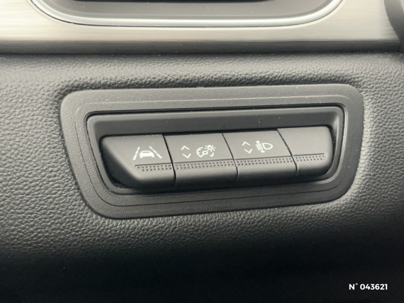 Coques de rétroviseurs noir/teinte caisse / Evolution technique Licence Arkamis / Console centrale de rangement avec accoudoir / Compartimentage de coffre / Peinture bi-ton (montants de pare-brise, coques de rétroviseurs, toit) / Répétiteurs latéraux de changement de direction / Commutation automatique des feux de route/croisement / Harmonie beige / Aide au freinage actif d'urgence avec détection piétons (AEBS City + Inter Urbain + Piéton) / EASY LINK avec écran 7" et navigation / Eclairage AV et AR Full LED Pure Vision / Tableau de bord avec écran numérique et personnalisable 7" / Condamnation centralisée des portes avec télécommande et condamnation des portes en roulant / Kit de gonflage et de réparation des pneumatiques / Alerte oubli des ceintures de sécurité aux 5 places / Alerte distance de sécurité - Information dans tableau de bord / Jantes alliage 18'' Pasadena diamantées gris erbé / Feux AR LED avec signature en forme de "C" et animation 3D / Freinage actif d'urgence avec détection piétons et cyclistes (AEBS City + Inter Urbain+ Piéton) / Sans prestation Bose / Alarme de ceinture de sécurité (Réglementation SBR) / Indicateur de changement de vitesse / Renault Multi-Sense (choix de modes de conduite) / Poignées de portes ton caisse / Harmonie foncé / Sellerie TEP / tissu avec jonc gris / Navigation / Appel d'Urgence Renault / Système ISOFIX (i-Size) aux places latérales AR et passager AV / Pneus à faible résistance au roulement / Evolution de gamme 2021 / Rétroviseur intérieur électrochrome / Ceinture centrale arrière 3 points / Peinture opaque