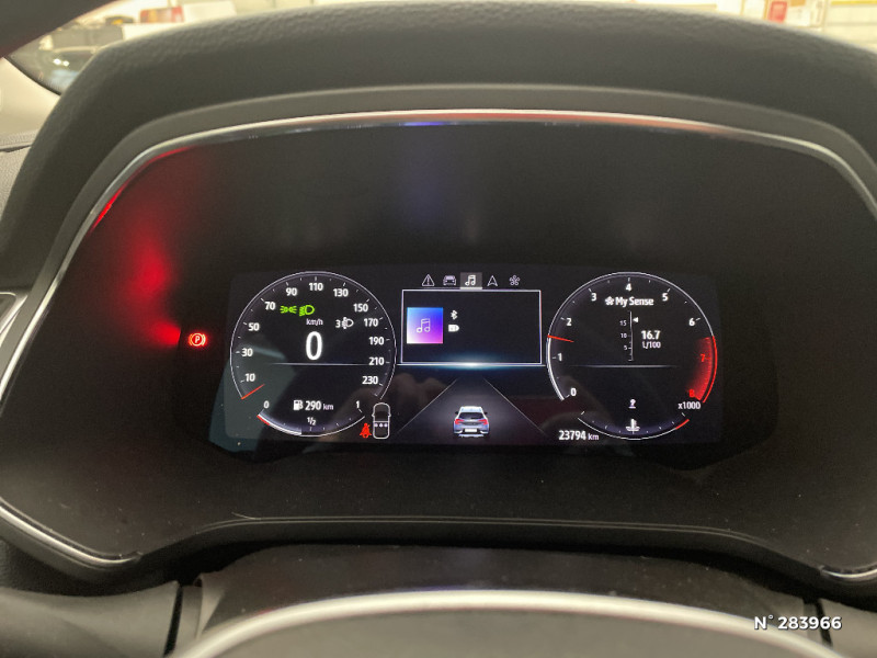 Condamnation centralisée des portes avec télécommande et condamnation des portes en roulant / Kit de gonflage et de réparation des pneumatiques / Alerte oubli des ceintures de sécurité aux 5 places / Alerte distance de sécurité - Information dans tableau de bord / Jantes alliage 18'' Pasadena diamantées gris erbé / Sellerie TEP / tissu avec jonc gris / Navigation / Appel d'Urgence Renault / Système ISOFIX (i-Size) aux places latérales AR et passager AV / Antenne requin / Pneus à faible résistance au roulement / Freinage actif d'urgence avec détection piétons et cyclistes (AEBS City + Inter Urbain+ Piéton) / Alternateur renforcé / Frein de parking électrique avec fonction Auto-Hold / Feux AR 3D / Volant en tissus / Sans chargeur à induction / Classe energetique 1 / EASY LINK avec écran 7" avec réplication smartphone sans fil (compatible android auto et Apple CarPlay) / Sellerie tissu avec jonc gris / Rétroviseur intérieur électrochrome / Ceinture centrale arrière 3 points / Indicateur de changement de vitesse / Renault Multi-Sense (choix de modes de conduite) / Poignées de portes ton caisse / Console centrale de rangement avec accoudoir / Compartimentage de coffre / Répétiteurs latéraux de changement de direction / Commutation automatique des feux de route/croisement / Harmonie beige / Eclairage AV et AR Full LED Pure Vision / Tableau de bord avec écran numérique et personnalisable 7"