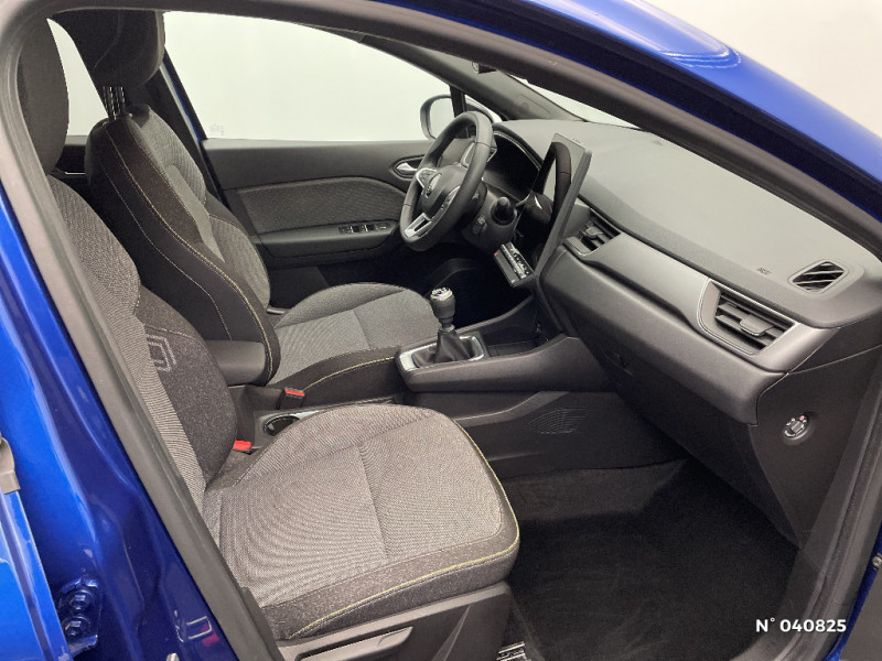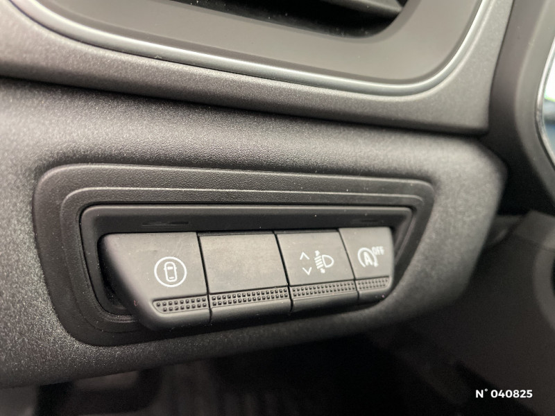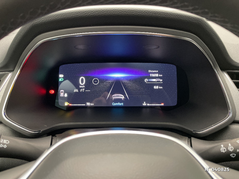 Rétroviseur intérieur électrochrome / Indicateur de changement de vitesse / Hayon manuel / Poignées de portes ton caisse / Console centrale de rangement avec accoudoir / Répétiteurs latéraux de changement de direction / Ceinture centrale AR 3 points / Harmonie noire / Sans pontets AR / Volant en tissus / Alerte détection de fatigue / Frein de parking électrique avec fonction Auto-Hold / Condamnation centralisée des portes avec télécommande et condamnation des portes en roulant / Kit de gonflage et de réparation des pneumatiques / Alerte oubli des ceintures de sécurité aux 5 places / Alerte distance de sécurité - Information dans tableau de bord / Appel d'Urgence Renault / Système ISOFIX (i-Size) aux places latérales AR et passager AV / Antenne requin / Aide au parking AV/AR et latéral / Eclairage AV et AR Full LED Pure Vision / Renault Multi-sense / Liseuses AV à LED / Cartographie Standard / Feux AR LED avec signature en forme de ''C'' et animation 3D / Coques de rétroviseurs noir/teinte caisse / OpenR link 10,4''avec navigation et services Google et tableau de bord numérique 10" / Alerte sortie de voie / Sellerie Techno / Système multimédia openR link 10.4" avecGoogle intégré / Plancher de coffre mobile / Contrôle de la traction (TCS) / Boîte de vitesse manuelle 6 rapports / Jantes Aluminium 18'' Black Hole