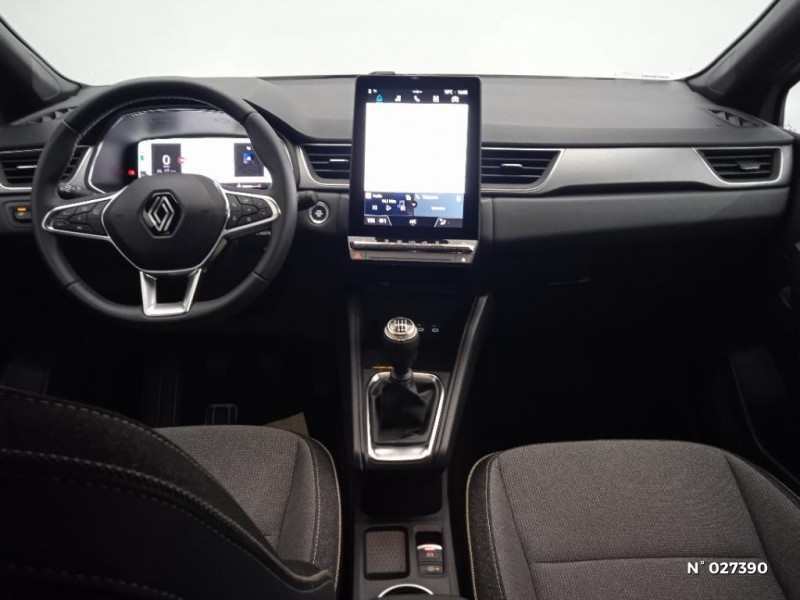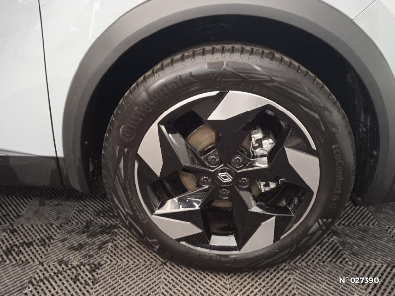 Coques de rétroviseurs noir/teinte caisse / Frein de parking électrique avec fonction Auto-Hold / Sans pontets AR / Volant en tissus / Alerte détection de fatigue / OpenR link 10,4''avec navigation et services Google et tableau de bord numérique 10" / Alerte sortie de voie / Sellerie Techno / Système multimédia openR link 10.4" avecGoogle intégré / Plancher de coffre mobile / Contrôle de la traction (TCS) / Boîte de vitesse manuelle 6 rapports / Jantes Aluminium 18'' Black Hole / Feux AR LED avec signature en forme de ''C'' et animation 3D / Rétroviseur intérieur électrochrome / Ceinture centrale AR 3 points / Indicateur de changement de vitesse / Hayon manuel / Poignées de portes ton caisse / Console centrale de rangement avec accoudoir / Répétiteurs latéraux de changement de direction / Harmonie noire / Condamnation centralisée des portes avec télécommande et condamnation des portes en roulant / Kit de gonflage et de réparation des pneumatiques / Alerte oubli des ceintures de sécurité aux 5 places / Alerte distance de sécurité - Information dans tableau de bord / Appel d'Urgence Renault / Système ISOFIX (i-Size) aux places latérales AR et passager AV / Antenne requin / Aide au parking AV/AR et latéral / Eclairage AV et AR Full LED Pure Vision / Renault Multi-sense / Liseuses AV à LED / Cartographie Standard