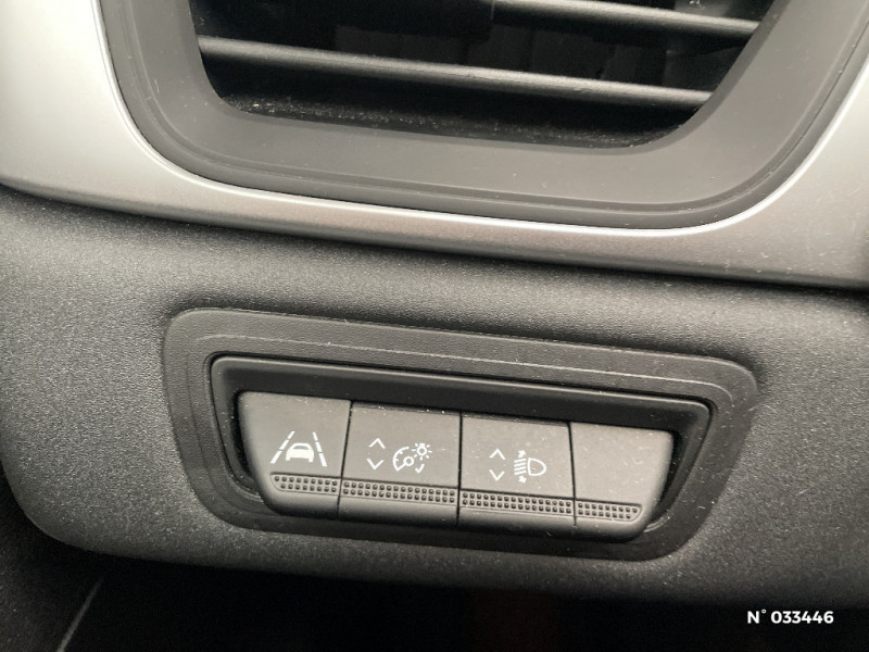 Poignées de portes ton caisse / Indicateur de changement de vitesse / Freinage actif d'urgence avec détection piétons et cyclistes (AEBS City + Inter Urbain+ Piéton) / Alternateur renforcé / Roue alliage 17" / Console centrale de rangement avec accoudoir / Répétiteurs latéraux de changement de direction / Commutation automatique des feux de route/croisement / Harmonie beige / Eclairage AV et AR Full LED Pure Vision / Tableau de bord avec écran numérique 4,2'' et compteurs analogiques / Condamnation centralisée des portes avec télécommande et condamnation des portes en roulant / Kit de gonflage et de réparation des pneumatiques / Alerte oubli des ceintures de sécurité aux 5 places / Sans chargeur à induction / Classe energetique 1 / EASY LINK avec écran 7" avec réplication smartphone sans fil (compatible android auto et Apple CarPlay) / Feux AR 3D / Volant en tissus / Alerte distance de sécurité - Information dans tableau de bord / Navigation / Appel d'Urgence Renault / Système ISOFIX (i-Size) aux places latérales AR et passager AV / Ceinture centrale arrière 3 points