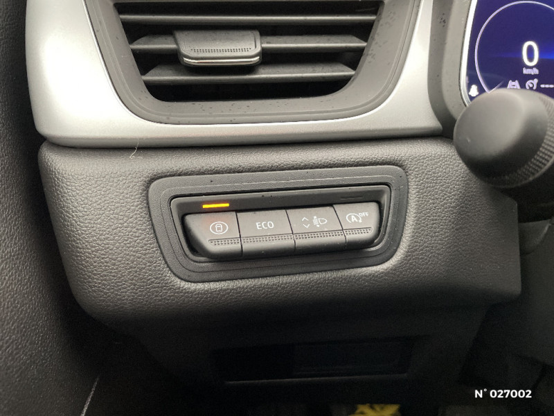 Coques de rétroviseurs noir/teinte caisse / Sans pontets AR / Enjoliveurs 17'' Nymphea / Volant en tissus / Alerte détection de fatigue / Liseuses LED / Badges noir brillant / Ceinture centrale AR 3 points / Peinture mono-ton / Indicateur de changement de vitesse / Hayon manuel / Poignées de portes ton caisse / Console centrale de rangement avec accoudoir / Répétiteurs latéraux de changement de direction / Harmonie beige / Condamnation centralisée des portes avec télécommande et condamnation des portes en roulant / Kit de gonflage et de réparation des pneumatiques / Alerte oubli des ceintures de sécurité aux 5 places / Alerte distance de sécurité - Information dans tableau de bord / Feux AR LED avec signature en forme de "C" / Appel d'Urgence Renault / Système ISOFIX (i-Size) aux places latérales AR et passager AV / Antenne requin / Eclairage AV et AR Full LED Pure Vision / OpenR link 10,4?? access display audio avec tableau de bord avec écran numérique et personlisable 7" / Alerte sortie de voie / Contrôle de la traction (TCS) / Boîte de vitesse manuelle 6 rapports