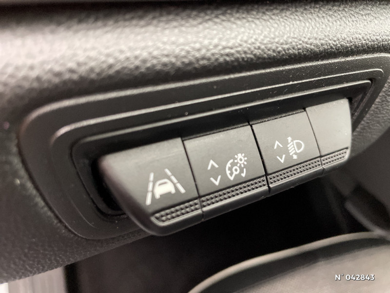 Indicateur de changement de vitesse / Renault Multi-Sense (choix de modes de conduite) / Poignées de portes ton caisse / Console centrale de rangement avec accoudoir / Compartimentage de coffre / Peinture bi-ton (montants de pare-brise, coques de rétroviseurs, toit) / Rétroviseur intérieur électrochrome / Ceinture centrale arrière 3 points / Peinture opaque / Commutation automatique des feux de route/croisement / Harmonie beige / Aide au freinage actif d'urgence avec détection piétons (AEBS City + Inter Urbain + Piéton) / EASY LINK avec écran 7" et navigation / Eclairage AV et AR Full LED Pure Vision / Tableau de bord avec écran numérique et personnalisable 7" / Répétiteurs latéraux de changement de direction / Feux AR LED avec signature en forme de "C" et animation 3D / Condamnation centralisée des portes avec télécommande et condamnation des portes en roulant / Kit de gonflage et de réparation des pneumatiques / Alerte oubli des ceintures de sécurité aux 5 places / Alerte distance de sécurité - Information dans tableau de bord / Jantes alliage 18'' Pasadena diamantées gris erbé / Harmonie foncé / Sellerie TEP / tissu avec jonc gris / Navigation / Appel d'Urgence Renault / Système ISOFIX (i-Size) aux places latérales AR et passager AV / Pneus à faible résistance au roulement / Evolution de gamme 2021 / Freinage actif d'urgence avec détection piétons et cyclistes (AEBS City + Inter Urbain+ Piéton) / Sans prestation Bose / Alarme de ceinture de sécurité (Réglementation SBR) / Alternateur renforcé / Evolution technique Licence Arkamis / Coques de rétroviseurs noir/teinte caisse / Evolution de gamme 2 (MC2)