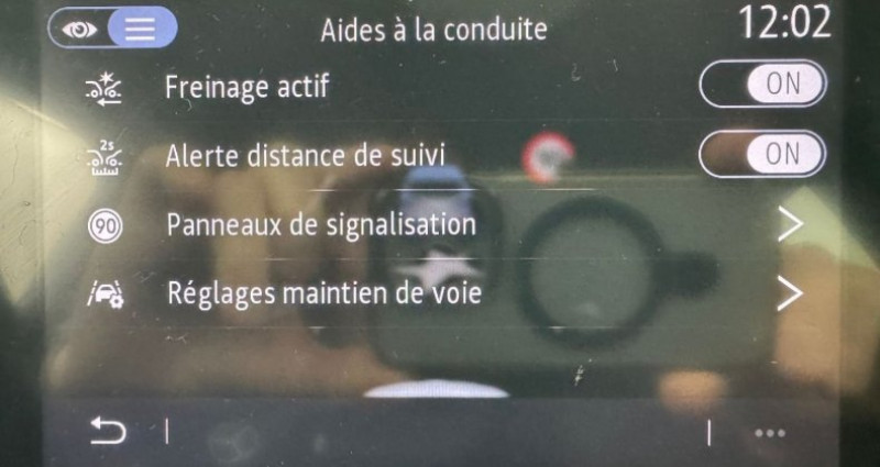 Cylindrée : 999 cm3 EQUIPEMENTS Siège conducteur réglable en hauteur, Carte Renault Mains libres, Régulateur limiteur de vitesse, Assistance au freinage d'urgence (A.F.U.), Ceinture centrale AR 3 points, Antiblocage des roues ABS, Ceintures de sécurité AV réglables en hauteur, Feux de stop à LED, Rétroviseurs extérieurs dégivrants réglables et rabattables électriquement, Lève/vitres électriques et impulsionnels, Climatisation manuelle, Allumage automatique des phares avec capteur de luminosité, Eclairage AV et AR Full LED Pure Vision, Banquette AR coulissante et rabattable 1/3 / 2/3, Tableau de bord avec écran numérique 4 2'' et compteurs analogiques, GPS systeme de navigation EASY LINK, Volant TEP, Aide au parking AV et AR, Caméra de recul, Aide au démarrage en côte, Aide au freinage actif d'urgence avec détection piétons (AEBS City + Inter Urbain + Piéton), Alerte de survitesse avec reconnaissance des panneaux de signalisation, Console centrale de rangement avec accoudoir, Airbags latéraux AV, Poignées de portes ton caisse, Mode ECO, Assistant maintien de voie, Appuie/têtes AR, Rétroviseur intérieur jour/nuit, Enjoliveurs 17'' Nymphea, Feux AR LED avec signature en forme de C, Harmonie intérieure foncée, Freinage actif d'urgence avec détection piétons et cyclistes (AEBS City + Inter Urbain+ Piéton), Alerte oubli des ceintures de sécurité aux 5 places, Sellerie Tissu Noir / Gris avec rayures, Système de détection de la pression des pneumatiques, Système ISOFIX (i/Size) aux places latérales AR et passager AV, Peinture Noir Etoilé, Condamnation centralisée des portes avec télécommande et condamnation des portes en roulant, Airbags frontaux,