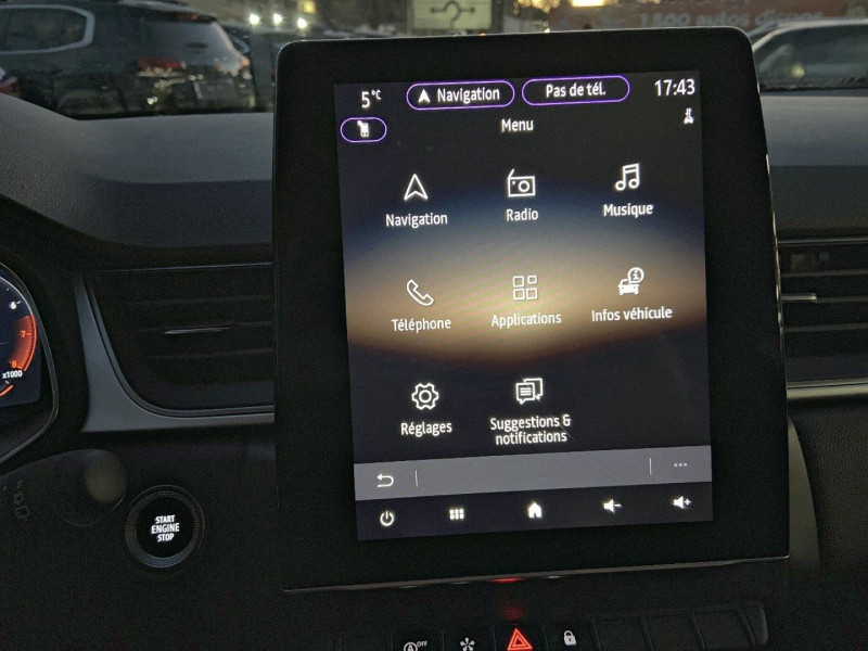 Tapis de sol / Peinture Bi-Ton / GPS sur Ecran Multimédia 9.3" / Smartphone Integration Apple Car Play Android Auto / Jantes Alu 17" diamantées / Radars Avant et Arrière / Digital Cockpit / Renault MultiSense / Frein à Main Électrique / CLIM Auto / LED Pure Vision / Feux Avant Avec Signature Lumineuse C-Shape Led / Pack Visibilité / Siège Regl. Hteur / voeu