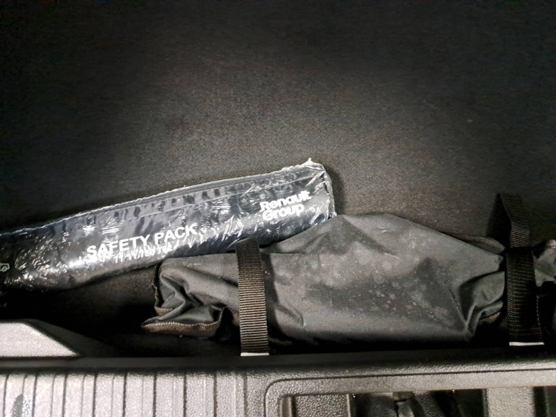 Aide au freinage actif d'urgence avec détection piétons (AEBS City + Inter Urbain + Piéton) / Alerte distance de sécurité - Information dans tableau de bord / Alerte oubli des ceintures de sécurité aux 5 places / Appel d'Urgence Renault / Ceinture centrale AR 3 points / Condamnation centralisée des portes avec télécommande et condamnation des portes en roulant / Console centrale de rangement avec accoudoir / EASY LINK avec écran 7" et navigation / Eclairage AV et AR Full LED Pure Vision / Enjoliveurs 17'' Nymphea / Feux AR LED avec signature en forme de "C" / Harmonie intérieure foncée / Indicateur de changement de vitesse / Kit de gonflage et de réparation des pneumatiques / Peinture mono-ton / Répétiteurs latéraux de changement de direction / Sellerie Tissu Noir / Gris avec rayures / Système ISOFIX (i-Size) aux places latérales AR et passager AV / Tableau de bord avec écran numérique 4,2'' et compteurs analogiques