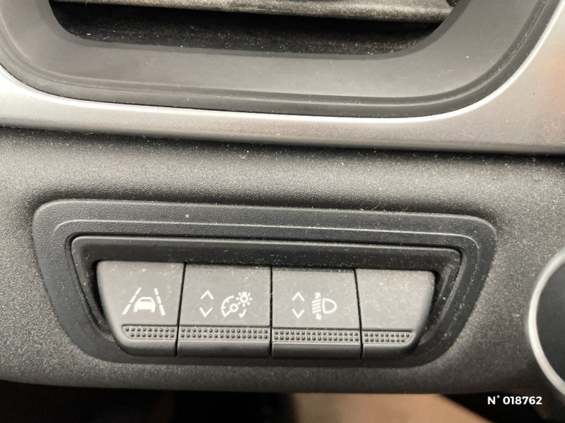 Ceinture centrale arrière 3 points / Console centrale de rangement avec accoudoir / Répétiteurs latéraux de changement de direction / Aide au freinage actif d'urgence avec détection piétons (AEBS City + Inter Urbain + Piéton) / EASY LINK avec écran 7" et navigation / Eclairage AV et AR Full LED Pure Vision / Tableau de bord avec écran numérique 4,2'' et compteurs analogiques / Condamnation centralisée des portes avec télécommande et condamnation des portes en roulant / Kit de gonflage et de réparation des pneumatiques / Alerte oubli des ceintures de sécurité aux 5 places / Alerte distance de sécurité - Information dans tableau de bord / Enjoliveurs 17'' Nymphea / Feux AR LED avec signature en forme de "C" / Harmonie foncé / Sellerie Tissu Noir / Gris avec rayures / Appel d'Urgence Renault / Système ISOFIX (i-Size) aux places latérales AR et passager AV / Peinture mono-ton / Peinture opaque / Indicateur de changement de vitesse