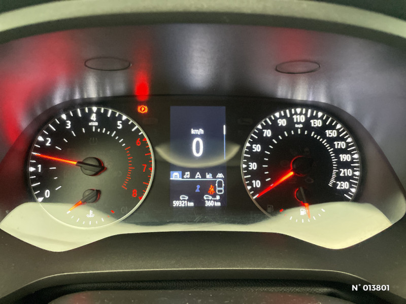 Sans pontets AR / Volant en tissus / Ceinture centrale arrière 3 points / Peinture mono-ton / Peinture opaque / Indicateur de changement de vitesse / Poignées de portes ton caisse / Console centrale de rangement avec accoudoir / Répétiteurs latéraux de changement de direction / Harmonie beige / Eclairage AV et AR Full LED Pure Vision / Tableau de bord avec écran numérique 4,2'' et compteurs analogiques / Condamnation centralisée des portes avec télécommande et condamnation des portes en roulant / Kit de gonflage et de réparation des pneumatiques / Alerte oubli des ceintures de sécurité aux 5 places / Alerte distance de sécurité - Information dans tableau de bord / Enjoliveurs 17'' Nymphea / Feux AR LED avec signature en forme de "C" / EASY LINK avec écran 7" : système multimédia compatible Android Auto et Apple CarPlay, Bluetooth / Appel d'Urgence Renault / Système ISOFIX (i-Size) aux places latérales AR et passager AV / Freinage actif d'urgence avec détection piétons et cyclistes (AEBS City + Inter Urbain+ Piéton) / Sans prestation Bose / Alternateur renforcé / Réhomologation moteur HR10 / Evolution aérodynamique / Classe energetique C / Evolution de gamme MC4 / Clé 3 boutons / Evol technique - Suppresion pompes à eau