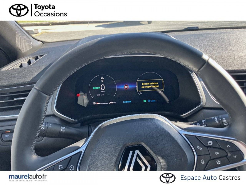 Aide au parking AV/AR et latéral / Alerte détection de fatigue / Alerte distance de sécurité - Information dans tableau de bord / Alerte oubli des ceintures de sécurité aux 5 places / Alerte sortie de voie / Antenne requin / Appel d'Urgence Renault / Cartographie Standard / Ceinture centrale AR 3 points / Condamnation centralisée des portes avec télécommande et condamnation des portes en roulant / Console centrale de rangement avec accoudoir / Coques de rétroviseurs noir/teinte caisse / Eclairage AV et AR Full LED Pure Vision / Feux AR LED avec signature en forme de ''C'' et animation 3D / Frein de parking électrique avec fonction Auto-Hold / Harmonie noire / Hayon AR manuel / Indicateur de changement de vitesse / Kit de gonflage et de réparation des pneumatiques / Liseuses AV à LED / OpenR link 10,4"avec navigation et services Google et tableau de bord numérique 10" / Peinture mono-ton / Plancher de coffre mobile / Poignées de portes ton caisse / Renault Multi-sense / Répétiteurs latéraux de changement de direction / Rétroviseur intérieur électrochrome / Sans pontets AR / Sellerie Techno / Système ISOFIX (i-Size) aux places latérales AR et passager AV / Système multimédia openR link 10.4" avecGoogle intégré / Volant en tissus