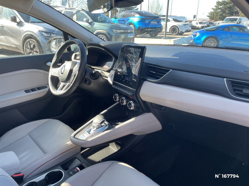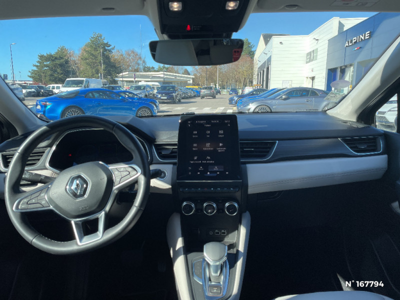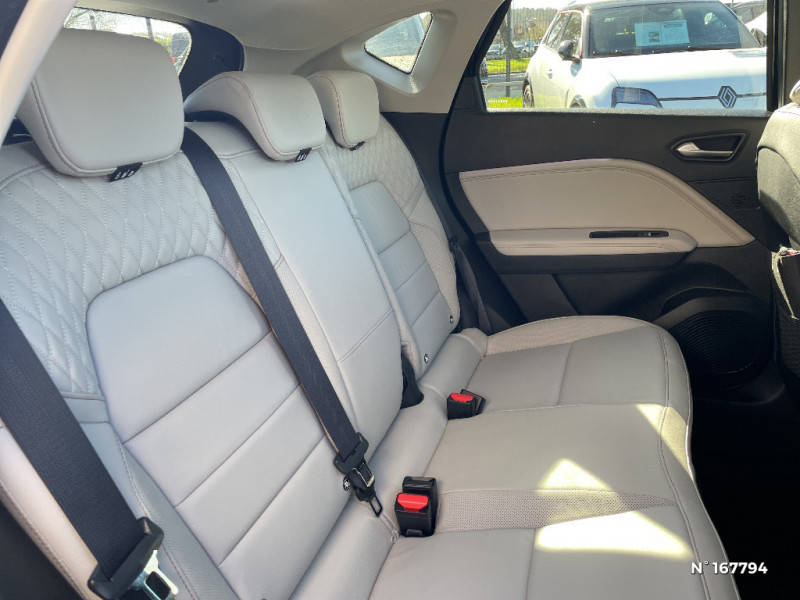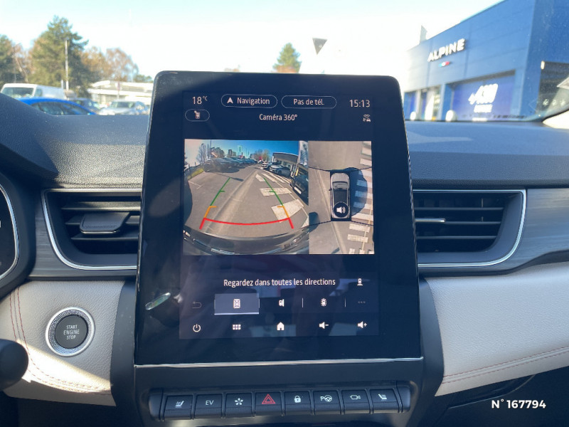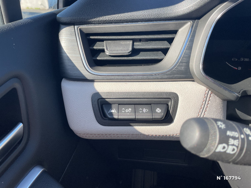 Indicateur de changement de vitesse / Renault Multi-Sense (choix de modes de conduite) / Poignées de portes ton caisse / Kit de gonflage et de réparation des pneumatiques / Alerte oubli des ceintures de sécurité aux 5 places / Alerte distance de sécurité - Information dans tableau de bord / Feux AR LED avec signature en forme de "C" et animation 3D / Navigation / Appel d'Urgence Renault / Système ISOFIX (i-Size) aux places latérales AR et passager AV / Antenne requin / Pneus à faible résistance au roulement / Siège conducteur à réglage électrique 6 voies et réglage manuel lombaire / Freinage actif d'urgence avec détection piétons et cyclistes (AEBS City + Inter Urbain+ Piéton) / Tableau de bord avec écran numérique et personnalisable 10" / Jantes alliage 18'' iconic diamantées noires / Frein de parking électrique avec fonction Auto-Hold / Badging E-Tech Gold / Classe energetique 1 / EASY LINK avec écran 9.3" avec réplication navigation et smartphone sans fil / Volant chauffant / Compartimentage de coffre / Répétiteurs latéraux de changement de direction / Caméra 360° / Easy Park Assist / Commutation automatique des feux de route/croisement / Harmonie beige / Eclairage AV et AR Full LED Pure Vision / Condamnation centralisée des portes avec télécommande et condamnation des portes en roulant / Console centrale volante, avec levier de vitesse e-shifter et accoudoir central / Rétroviseur intérieur électrochrome Frameless / Peinture Bleu Marine Fumé / Toit Noir Etoilé / Ceinture centrale arrière 3 points