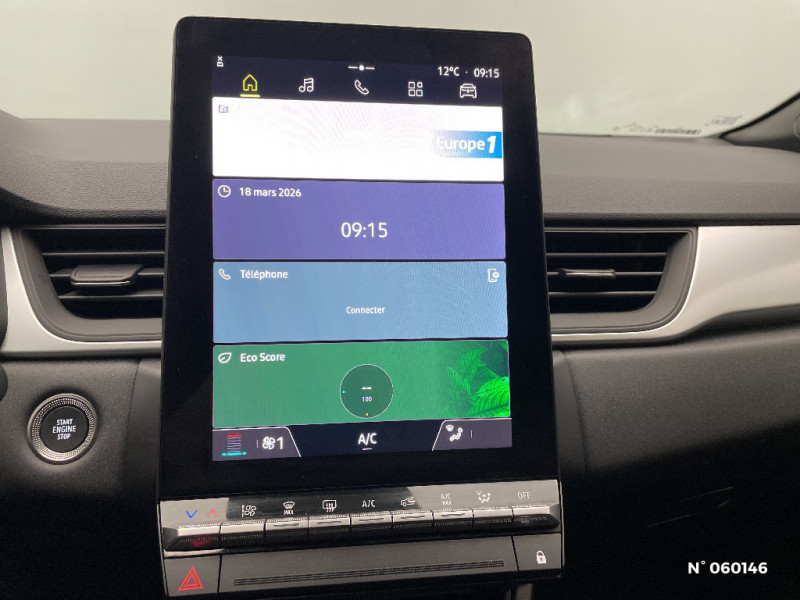 Ceinture centrale AR 3 points / Peinture mono-ton / Indicateur de changement de vitesse / Hayon manuel / Poignées de portes ton caisse / Console centrale de rangement avec accoudoir / Harmonie beige / Condamnation centralisée des portes avec télécommande et condamnation des portes en roulant / Kit de gonflage et de réparation des pneumatiques / Alerte oubli des ceintures de sécurité aux 5 places / Alerte distance de sécurité - Information dans tableau de bord / Feux AR LED avec signature en forme de "C" / Appel d'Urgence Renault / Système ISOFIX (i-Size) aux places latérales AR et passager AV / Antenne requin / Eclairage AV et AR Full LED Pure Vision / Répétiteurs latéraux de changement de direction / Coques de rétroviseurs noir/teinte caisse / Alerte détection de fatigue / Liseuses LED / Badges noir brillant / OpenR link 10,4?? access display audio avec tableau de bord avec écran numérique et personlisable 7" / Alerte sortie de voie / Contrôle de la traction (TCS) / Boîte de vitesse automatique 4 rapports / Sans pontets AR / Enjoliveurs 17'' Nymphea / Volant en tissus