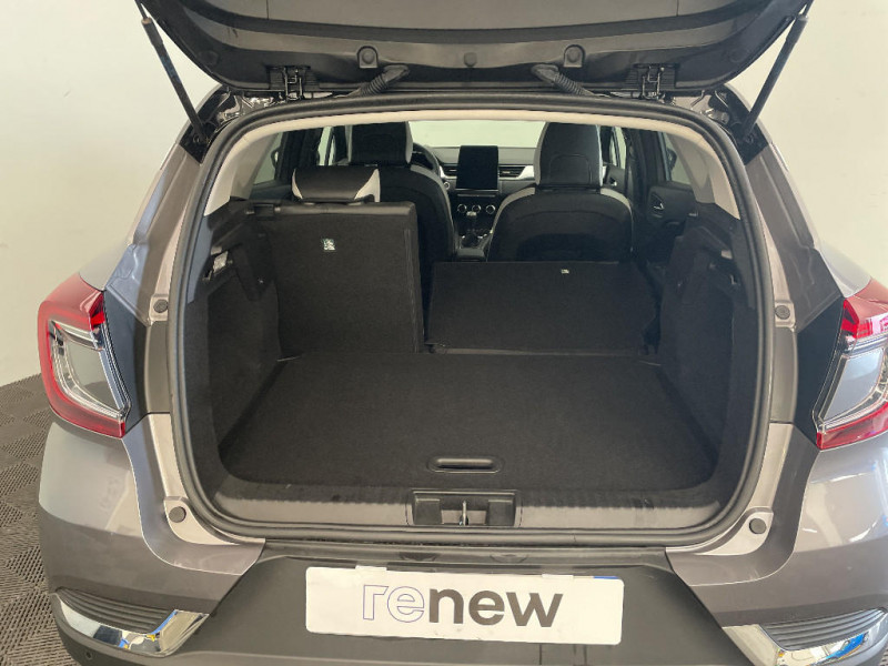 Poignées de portes ton caisse / Console centrale de rangement avec accoudoir / Répétiteurs latéraux de changement de direction / Commutation automatique des feux de route/croisement / Harmonie beige / Eclairage AV et AR Full LED Pure Vision / Tableau de bord avec écran numérique et personnalisable 7" / Condamnation centralisée des portes avec télécommande et condamnation des portes en roulant / Kit de gonflage et de réparation des pneumatiques / Alerte oubli des ceintures de sécurité aux 5 places / Alerte distance de sécurité - Information dans tableau de bord / Jantes alliage 18'' Pasadena diamantées gris erbé / Navigation / Appel d'Urgence Renault / Système ISOFIX (i-Size) aux places latérales AR et passager AV / Antenne requin / Pneus à faible résistance au roulement / Freinage actif d'urgence avec détection piétons et cyclistes (AEBS City + Inter Urbain+ Piéton) / Alternateur renforcé / Frein de parking électrique avec fonction Auto-Hold / Feux AR 3D / Volant en tissus / EASY LINK avec écran 7" avec réplication smartphone sans fil (compatible android auto et Apple CarPlay) / Sellerie tissu avec jonc gris / Compartiment de coffre / Indicateur de changement de vitesse / Renault Multi-Sense (choix de modes de conduite) / Rétroviseur intérieur électrochrome / Ceinture centrale arrière 3 points