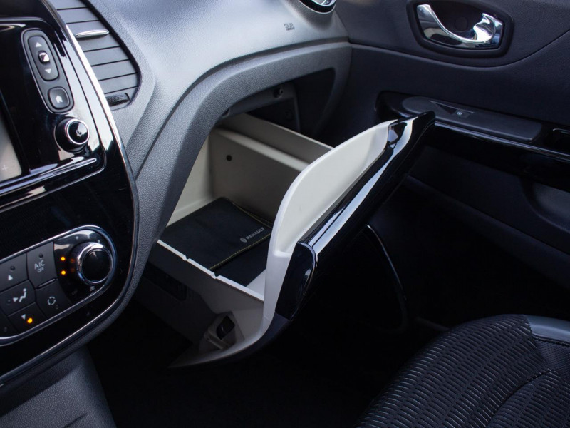Élastiques de rangement au dos des sièges avant / Airbags frontaux et latéraux conducteur et passager déconnectables / Alerte de ceinture de sécurité conducteur et passager / Banquette arrière coulissante, rabattable 1/3 - 2/3 avec 3 appuis-têtes / Boucliers ton caisse / Capteur de température extérieure / Carte Renault avec accès et démarrage mains-libres avec fermeture à l?éloignement / Décors intérieurs Chrome (cerclages aérateurs, console centrale et haut-parleurs) / Direction assistée électrique avec assistance variable / Embase de levier de vitesses chromé / Jonc de hayon et de feux Chrome / Joncs de calandre et de protections inférieures de portes Chrome / Kit gonflage de réparation / MédiaNav Evolution / Mode de conduite Eco avec bouton d'activation / Pack City / Pack look Noir / Pack Premium / Peinture bi-ton (toit, coques de rétroviseurs, montants de pare-brise) / Phares avant antibrouillard avec fonction ''Corner-light'' / Plancher de coffre réversible / Poignées de portes ton caisse / Rangement central amovible / Sellerie fixe TEP/Textile Noir&Gris / Système de contrôle de trajectoire (ESP) et système antipatinage (ASR) / Système de fixation ISOFIX aux places latérales arrière et passager avant / Système de récupération d'énergie au freinage / Tiroir Easy Life Ivoire / Tiroir EasyLife avec éclairage / Volant cuir pleine fleur
