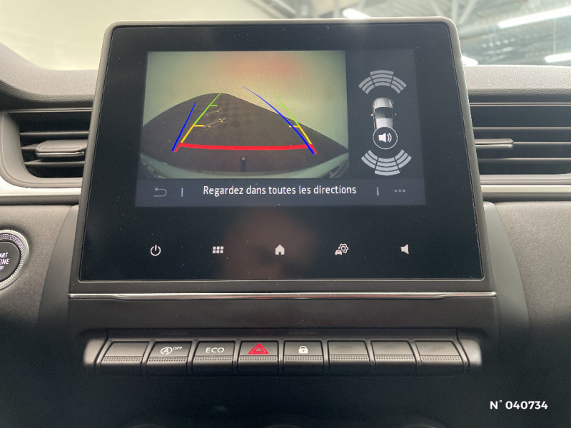 Répétiteurs latéraux de changement de direction / Harmonie beige / Ceinture centrale arrière 3 points / Indicateur de changement de vitesse / Poignées de portes ton caisse / Console centrale de rangement avec accoudoir / EASY LINK avec écran 7" et navigation / Eclairage AV et AR Full LED Pure Vision / Tableau de bord avec écran numérique 4,2'' et compteurs analogiques / Condamnation centralisée des portes avec télécommande et condamnation des portes en roulant / Appel d'Urgence Renault / Système ISOFIX (i-Size) aux places latérales AR et passager AV / Sans pneu à faible à résistance au roulement / Freinage actif d'urgence avec détection piétons et cyclistes (AEBS City + Inter Urbain+ Piéton) / Sans prestation Bose / Alarme de ceinture de sécurité (Réglementation SBR) / Alternateur renforcé / Evolution technique Licence Arkamis / Evolution de gamme 2 (MC2) / Kit de gonflage et de réparation des pneumatiques / Alerte oubli des ceintures de sécurité aux 5 places / Alerte distance de sécurité - Information dans tableau de bord / Enjoliveurs 17'' Nymphea / Feux AR LED avec signature en forme de "C" / Navigation