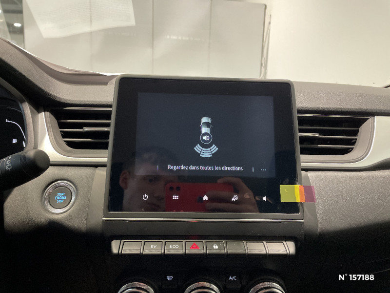 Ceinture centrale arrière 3 points / Indicateur de changement de vitesse / Poignées de portes ton caisse / Console centrale de rangement avec accoudoir / Répétiteurs latéraux de changement de direction / Harmonie beige / Eclairage AV et AR Full LED Pure Vision / Tableau de bord avec écran numérique et personnalisable 7" / Condamnation centralisée des portes avec télécommande et condamnation des portes en roulant / Kit de gonflage et de réparation des pneumatiques / Alerte oubli des ceintures de sécurité aux 5 places / Alerte distance de sécurité - Information dans tableau de bord / Feux AR LED avec signature en forme de "C" / EASY LINK avec écran 7" : système multimédia compatible Android Auto et Apple CarPlay, Bluetooth / Appel d'Urgence Renault / Système ISOFIX (i-Size) aux places latérales AR et passager AV / Freinage actif d'urgence avec détection piétons et cyclistes (AEBS City + Inter Urbain+ Piéton) / Badging E-Tech Gold / Enjoliveurs 17'' Nymphea / Volant en tissus / Classe energetique 1 / EASY LINK avec écran 7" avec réplication smartphone sans fil (compatible android auto et Apple CarPlay) / Peinture opaque