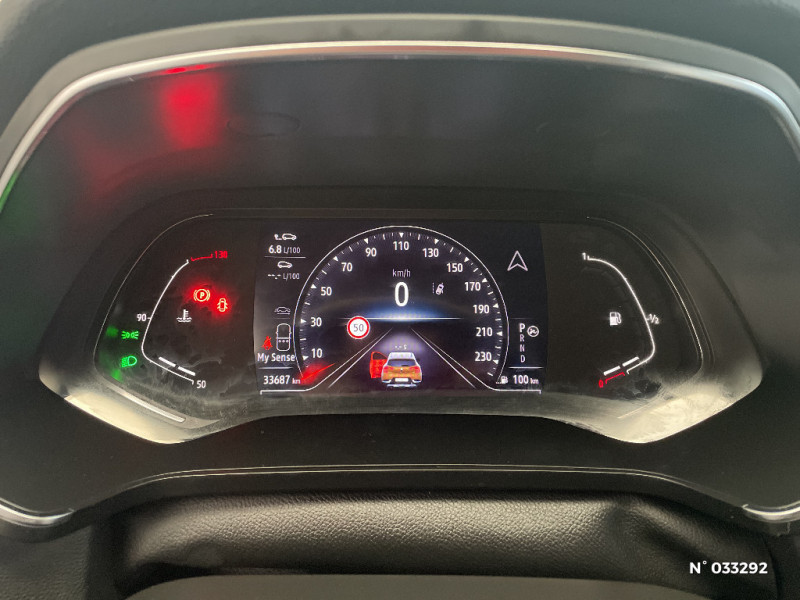 Eclairage AV et AR Full LED Pure Vision / Condamnation centralisée des portes avec télécommande et condamnation des portes en roulant / Kit de gonflage et de réparation des pneumatiques / Alerte oubli des ceintures de sécurité aux 5 places / Alerte distance de sécurité - Information dans tableau de bord / Indicateur de changement de vitesse / Renault Multi-Sense (choix de modes de conduite) / Poignées de portes ton caisse / Console centrale de rangement avec accoudoir / Jantes alliage 18'' Pasadena diamantées gris erbé / Sellerie TEP / tissu avec jonc gris / Navigation / Appel d'Urgence Renault / Système ISOFIX (i-Size) aux places latérales AR et passager AV / Pneus à faible résistance au roulement / Liseuses AV à LED / Freinage actif d'urgence avec détection piétons et cyclistes (AEBS City + Inter Urbain+ Piéton) / Sans prestation Bose / Feux arrières 3D intermédiaire / Alarme de ceinture de sécurité (Réglementation SBR) / Eco-innov Sailing Stop / Evolution technique Licence Arkamis / Evolution technique éco cata / Evolution de gamme 2 (MC2) / Rétroviseur intérieur électrochrome / Ceinture centrale arrière 3 points / Peinture mono-ton / Répétiteurs latéraux de changement de direction / Commutation automatique des feux de route/croisement / Harmonie beige / EASY LINK avec écran 7" et navigation / Tableau de bord avec écran numérique et personnalisable 7"