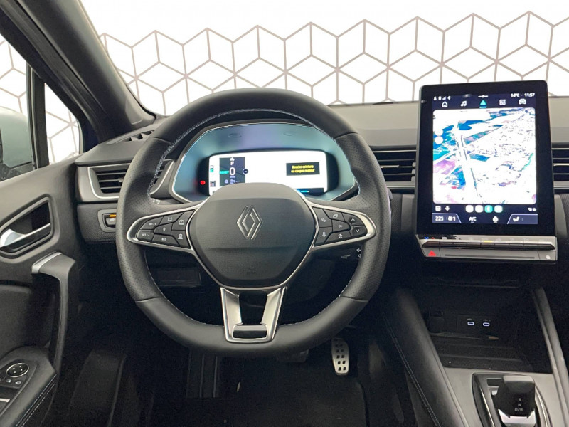 Aide au parking AV/AR et latéral / Alerte distance de sécurité - Information dans tableau de bord / Alerte oubli des ceintures de sécurité aux 5 places / Alerte sortie de voie / Alerte sortie sécurisée des occupants / Antenne requin / Appel d'Urgence Renault / Avertisseur d'angle mort et détection AR avec correction / Avertisseur de sortie de stationnement en marche AR / Boîte de vitesse hybride multimode 6 rapports / Caméra détection de fatigue du conducteur / Cartographie Standard / Ceinture centrale AR 3 points / Condamnation centralisée des portes avec télécommande et condamnation des portes en roulant / Console flottante et e-shifter / Contrôle de la traction (TCS) / Coques de rétroviseurs noir/teinte caisse / Design esprit Alpine extérieur / Design esprit Alpine intérieur / Eclairage AV et AR Full LED Pure Vision / Feux AR LED avec signature en forme de ''C'' et animation 3D / Frein de parking électrique avec fonction Auto-Hold / Harmonie esprit Alpine / Hayon AR manuel / Indicateur de changement de vitesse / Jantes Aluminium 19'' / Kit de gonflage et de réparation des pneumatiques / Maintenance connectée, incluse pendant 8 ans / Miroirs de courtoisie rétroéclairés / Mise à jour système (via firmware over the air FOTA), inclus pendant 5 ans / OpenR link 10,4"avec navigation et services Google et tableau de bord numérique 10" / Pack connected driving, inclus pendant 5 ans / Pack contrôle à distance (via l'application My Renault), inclus pendant 5 ans / Plancher de coffre mobile / Poignées de portes ton caisse / Renault Multi-sense / Répétiteurs latéraux de changement de direction / Rétroviseur intérieur électrochrome Frameless / Sellerie Esprit Alpine / Système ISOFIX (i-Size) aux places AR (latérales) / Système multimédia openR link 10.4" avecGoogle intégré / Volant chauffant / Volant textile enduit grainé