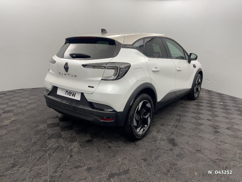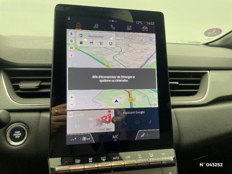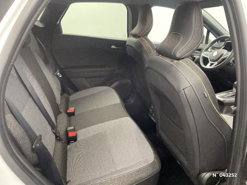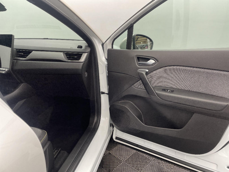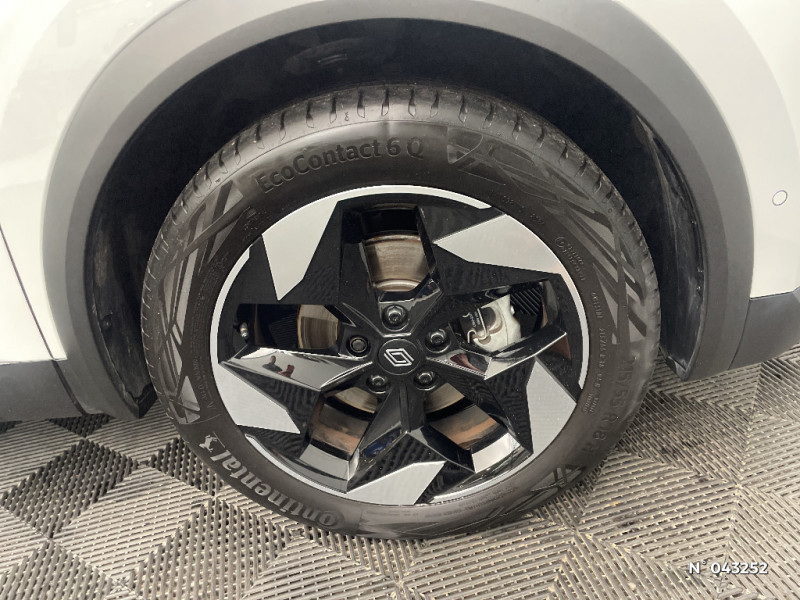 Tableau de bord avec écran numérique et personnalisable 10" / Frein de parking électrique avec fonction Auto-Hold / Volant en tissus / Plancher de coffre amovible / Alerte détection de fatigue / Compartiment de coffre / Intérieur en tissu / Intel speed assist / OpenR link 10,4??avec navigation et services Google et tableau de bord numérique 10" / Alerte sortie de voie / Sellerie Techno / Système multimédia openR link 10.4" avecGoogle intégré / Plancher de coffre mobile / Condamnation centralisée des portes avec télécommande et condamnation des portes en roulant / Rétroviseur intérieur électrochrome / Ceinture centrale AR 3 points / Peinture mono-ton / Indicateur de changement de vitesse / Hayon manuel / Poignées de portes ton caisse / Console centrale de rangement avec accoudoir / Répétiteurs latéraux de changement de direction / Harmonie noire / Kit de gonflage et de réparation des pneumatiques / Alerte oubli des ceintures de sécurité aux 5 places / Alerte distance de sécurité - Information dans tableau de bord / Navigation / Appel d'Urgence Renault / Système ISOFIX (i-Size) aux places latérales AR et passager AV / Antenne requin / Aide au parking AV/AR et latéral / Eclairage AV et AR Full LED Pure Vision / Renault Multi-sense / Liseuses AV à LED / Cartographie Standard / Feux AR LED avec signature en forme de ''C'' et animation 3D / Coques de rétroviseurs noir/teinte caisse
