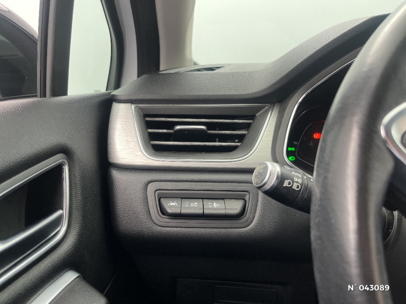 Commutation automatique des feux de route/croisement / Aide au freinage actif d'urgence avec détection piétons (AEBS City + Inter Urbain + Piéton) / EASY LINK avec écran 7" et navigation / Eclairage AV et AR Full LED Pure Vision / Tableau de bord avec écran numérique et personnalisable 7" / Condamnation centralisée des portes avec télécommande et condamnation des portes en roulant / Kit de gonflage et de réparation des pneumatiques / Console centrale de rangement avec accoudoir / Peinture bi-ton (montants de pare-brise, coques de rétroviseurs, toit) / Répétiteurs latéraux de changement de direction / Alerte oubli des ceintures de sécurité aux 5 places / Alerte distance de sécurité - Information dans tableau de bord / Jantes alliage 18'' Pasadena diamantées gris erbé / Feux AR LED avec signature en forme de "C" et animation 3D / Harmonie foncé / Sellerie TEP / tissu avec jonc gris / Appel d'Urgence Renault / Système ISOFIX (i-Size) aux places latérales AR et passager AV / Indicateur de changement de vitesse / Renault Multi-Sense (choix de modes de conduite) / Rétroviseur intérieur électrochrome / Ceinture centrale arrière 3 points