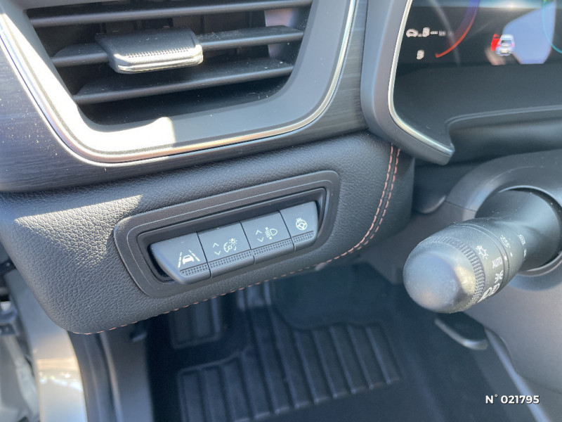 Renault Multi-Sense (choix de modes de conduite) / Poignées de portes ton caisse / Volant chauffant / Répétiteurs latéraux de changement de direction / Caméra 360° / Easy Park Assist / Commutation automatique des feux de route/croisement / Harmonie beige / Eclairage AV et AR Full LED Pure Vision / Condamnation centralisée des portes avec télécommande et condamnation des portes en roulant / Console centrale volante, avec levier de vitesse e-shifter et accoudoir central / Rétroviseur intérieur électrochrome Frameless / Kit de gonflage et de réparation des pneumatiques / Alerte oubli des ceintures de sécurité aux 5 places / Alerte distance de sécurité - Information dans tableau de bord / Feux AR LED avec signature en forme de "C" et animation 3D / Navigation / Appel d'Urgence Renault / Système ISOFIX (i-Size) aux places latérales AR et passager AV / Antenne requin / Pneus à faible résistance au roulement / Siège conducteur à réglage électrique 6 voies et réglage manuel lombaire / Freinage actif d'urgence avec détection piétons et cyclistes (AEBS City + Inter Urbain+ Piéton) / Tableau de bord avec écran numérique et personnalisable 10" / Ceinture centrale arrière 3 points / Indicateur de changement de vitesse / Jantes alliage 18'' iconic diamantées noires / Frein de parking électrique avec fonction Auto-Hold / Badging E-Tech Gold / Classe energetique 1 / EASY LINK avec écran 9.3" avec réplication navigation et smartphone sans fil