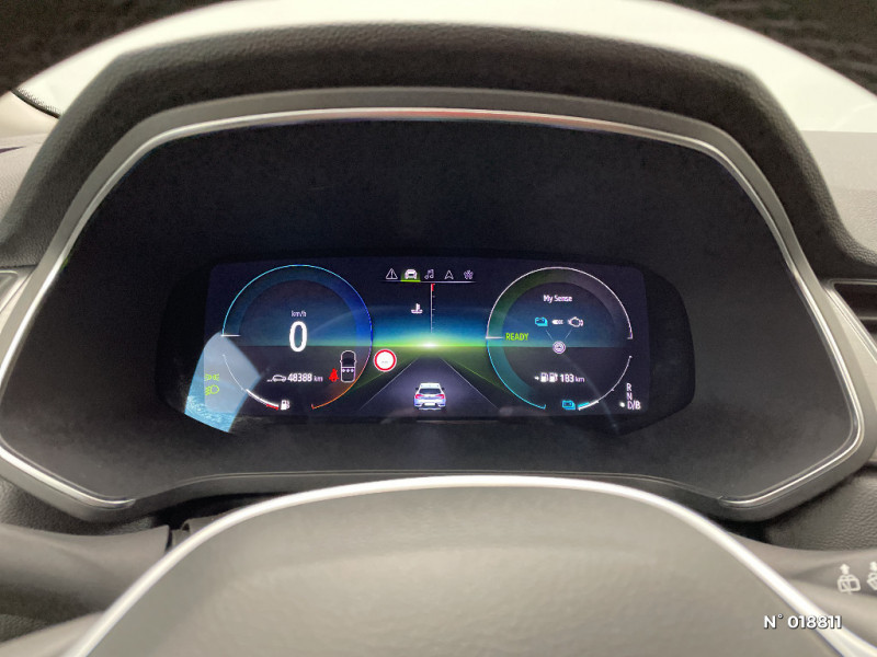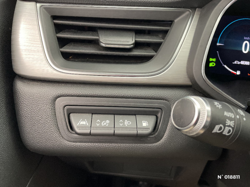 Renault Multi-Sense (choix de modes de conduite) / Poignées de portes ton caisse / Peinture bi-ton (montants de pare-brise, coques de rétroviseurs, toit) / Répétiteurs latéraux de changement de direction / Commutation automatique des feux de route/croisement / Aide au freinage actif d'urgence avec détection piétons (AEBS City + Inter Urbain + Piéton) / EASY LINK avec écran 7" et navigation / Eclairage AV et AR Full LED Pure Vision / Tableau de bord avec écran numérique et personnalisable 10" / Condamnation centralisée des portes avec télécommande et condamnation des portes en roulant / Kit de gonflage et de réparation des pneumatiques / Alerte oubli des ceintures de sécurité aux 5 places / Alerte distance de sécurité - Information dans tableau de bord / Jantes alliage 18'' Pasadena diamantées gris erbé / Feux AR LED avec signature en forme de "C" et animation 3D / Harmonie foncé / Sellerie TEP / tissu avec jonc gris / Appel d'Urgence Renault / Système ISOFIX (i-Size) aux places latérales AR et passager AV / Rétroviseur intérieur électrochrome / Ceinture centrale arrière 3 points / Indicateur de changement de vitesse