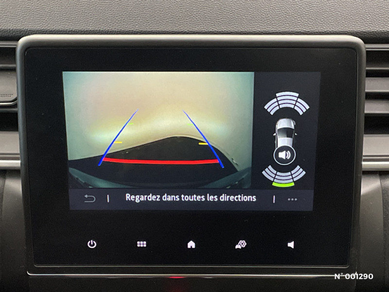 Alerte oubli des ceintures de sécurité aux 5 places / Alerte distance de sécurité - Information dans tableau de bord / Enjoliveurs 17'' Nymphea / Feux AR LED avec signature en forme de "C" / Harmonie foncé / Sellerie Tissu Noir / Gris avec rayures / Appel d'Urgence Renault / Système ISOFIX (i-Size) aux places latérales AR et passager AV / Répétiteurs latéraux de changement de direction / Aide au freinage actif d'urgence avec détection piétons (AEBS City + Inter Urbain + Piéton) / EASY LINK avec écran 7" et navigation / Eclairage AV et AR Full LED Pure Vision / Tableau de bord avec écran numérique 4,2'' et compteurs analogiques / Console centrale de rangement avec accoudoir / Ceinture centrale arrière 3 points / Peinture mono-ton / Indicateur de changement de vitesse / Poignées de portes ton caisse / Condamnation centralisée des portes avec télécommande et condamnation des portes en roulant / Kit de gonflage et de réparation des pneumatiques