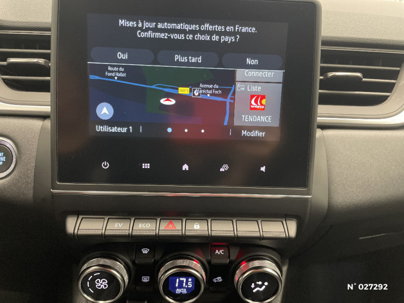 Ceinture centrale arrière 3 points / Peinture opaque / Indicateur de changement de vitesse / Poignées de portes ton caisse / Console centrale de rangement avec accoudoir / Compartimentage de coffre / Répétiteurs latéraux de changement de direction / Commutation automatique des feux de route/croisement / EASY LINK avec écran 7" et navigation / Eclairage AV et AR Full LED Pure Vision / Tableau de bord avec écran numérique et personnalisable 7" / Condamnation centralisée des portes avec télécommande et condamnation des portes en roulant / Kit de gonflage et de réparation des pneumatiques / Alerte oubli des ceintures de sécurité aux 5 places / Alerte distance de sécurité - Information dans tableau de bord / Navigation / Appel d'Urgence Renault / Harmonie beige / Volant en tissus / Sans evolution techniqiue FM2 / Classe energetique 1 / EASY LINK avec écran 7" avec réplication smartphone sans fil (compatible android auto et Apple CarPlay) / Système ISOFIX (i-Size) aux places latérales AR et passager AV / Freinage actif d'urgence avec détection piétons et cyclistes (AEBS City + Inter Urbain+ Piéton) / Roue alliage 17" / Badging E-Tech Gold / Feux AR 3D