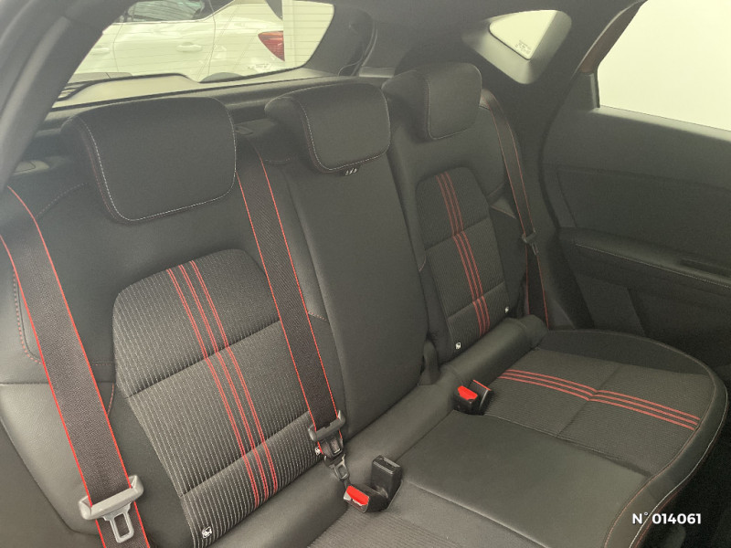 Navigation / Appel d'Urgence Renault / Ceinture centrale arrière 3 points / Peinture opaque / Feux AR LED avec signature en forme de "C" et animation 3D / Compartimentage de coffre / Peinture bi-ton (montants de pare-brise, coques de rétroviseurs, toit) / Répétiteurs latéraux de changement de direction / Commutation automatique des feux de route/croisement / Prestation RS-Line exterieur / Prestation RS-Line interieur / Eclairage AV et AR Full LED Pure Vision / Tableau de bord avec écran numérique et personnalisable 7" / Condamnation centralisée des portes avec télécommande et condamnation des portes en roulant / Console centrale volante, avec levier de vitesse e-shifter et accoudoir central / Rétroviseur intérieur électrochrome Frameless / Kit de gonflage et de réparation des pneumatiques / Indicateur de changement de vitesse / Renault Multi-Sense (choix de modes de conduite) / Poignées de portes ton caisse / Evolution de gamme 2021 / Prestation R.S. Line Extérieure / Prestation R.S. Line Intérieure / Freinage actif d'urgence avec détection piétons et cyclistes (AEBS City + Inter Urbain+ Piéton) / EASY LINK avec écran 9.3" et navigation avec système audio ARKAMYS / Sans prestation Bose / Alarme de ceinture de sécurité (Réglementation SBR) / Evolution technique Licence Arkamis / Système ISOFIX (i-Size) aux places latérales AR et passager AV / Antenne requin / Pneus à faible résistance au roulement / Harmonie noire / Jantes alliage 18'' Le Castellet R.S. Line / Prestation R.S. Line Signature / Roue alliage 18" / Sellerie spécifique R.S. Line / Alerte oubli des ceintures de sécurité aux 5 places / Alerte distance de sécurité - Information dans tableau de bord
