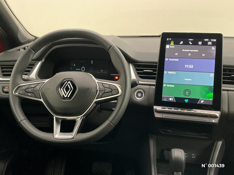 Liseuses LED / Badges noir brillant / OpenR link 10,4?? access display audio avec tableau de bord avec écran numérique et personlisable 7" / Alerte sortie de voie / Répétiteurs latéraux de changement de direction / Harmonie beige / Condamnation centralisée des portes avec télécommande et condamnation des portes en roulant / Kit de gonflage et de réparation des pneumatiques / Alerte oubli des ceintures de sécurité aux 5 places / Alerte distance de sécurité - Information dans tableau de bord / Feux AR LED avec signature en forme de "C" / Appel d'Urgence Renault / Système ISOFIX (i-Size) aux places latérales AR et passager AV / Roues tôlées 17" / Contrôle de la traction (TCS) / Boîte de vitesse automatique 4 rapports / Ceinture centrale AR 3 points / Peinture mono-ton / Indicateur de changement de vitesse / Hayon manuel / Poignées de portes ton caisse / Console centrale de rangement avec accoudoir / Antenne requin / Eclairage AV et AR Full LED Pure Vision / Coques de rétroviseurs noir/teinte caisse / Sans pontets AR / Enjoliveurs 17'' Nymphea / Volant en tissus / Alerte détection de fatigue