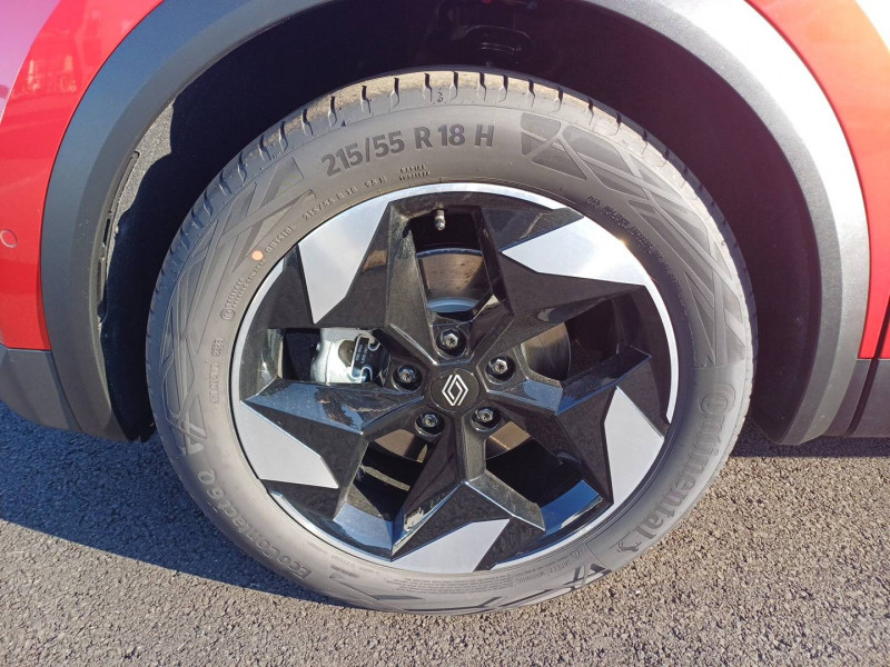 Aide au parking AV/AR et latéral / Alerte détection de fatigue / Alerte distance de sécurité - Information dans tableau de bord / Alerte oubli des ceintures de sécurité aux 5 places / Alerte sortie de voie / Antenne requin / Appel d'Urgence Renault / Boîte de vitesse hybride multimode 6 rapports / Cartographie Standard / Ceinture centrale AR 3 points / Condamnation centralisée des portes avec télécommande et condamnation des portes en roulant / Console centrale de rangement avec accoudoir / Contrôle de la traction (TCS) / Coques de rétroviseurs noir/teinte caisse / Eclairage AV et AR Full LED Pure Vision / Feux AR LED avec signature en forme de ''C'' et animation 3D / Frein de parking électrique avec fonction Auto-Hold / Harmonie noire / Hayon AR manuel / Indicateur de changement de vitesse / Jantes Aluminium 18'' / Kit de gonflage et de réparation des pneumatiques / Liseuses AV à LED / Maintenance connectée, incluse pendant 8 ans / Mise à jour système (via firmware over the air FOTA), inclus pendant 5 ans / OpenR link 10,4"avec navigation et services Google et tableau de bord numérique 10" / Pack connected driving, inclus pendant 5 ans / Pack contrôle à distance (via l'application My Renault), inclus pendant 5 ans / Plancher de coffre mobile / Poignées de portes ton caisse / Renault Multi-sense / Répétiteurs latéraux de changement de direction / Rétroviseur intérieur électrochrome / Sellerie Techno / Système ISOFIX (i-Size) aux places latérales AR et passager AV / Système multimédia openR link 10.4" avecGoogle intégré / Volant textile enduit grainé