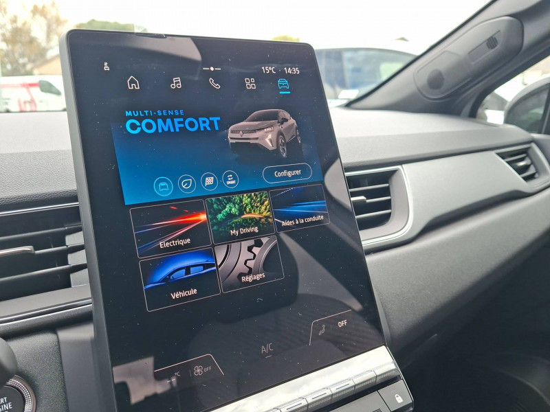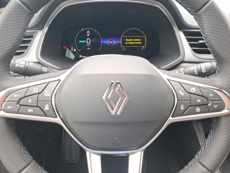 Aide au parking AV/AR et latéral / Alerte distance de sécurité - Information dans tableau de bord / Alerte oubli des ceintures de sécurité aux 5 places / Alerte sortie de voie / Antenne requin / Appel d'Urgence Renault / Boîte de vitesse hybride multimode 6 rapports / Caméra détection de fatigue du conducteur / Cartographie Standard / Ceinture centrale AR 3 points / Condamnation centralisée des portes avec télécommande et condamnation des portes en roulant / Console centrale de rangement avec accoudoir / Contrôle de la traction (TCS) / Coques de rétroviseurs noir/teinte caisse / Eclairage AV et AR Full LED Pure Vision / Feux AR LED avec signature en forme de ''C'' et animation 3D / Frein de parking électrique avec fonction Auto-Hold / Harmonie noire / Hayon AR manuel / Indicateur de changement de vitesse / Jantes Aluminium 18'' / Kit de gonflage et de réparation des pneumatiques / Liseuses AV à LED / Maintenance connectée, incluse pendant 8 ans / Mise à jour système (via firmware over the air FOTA), inclus pendant 5 ans / OpenR link 10,4"avec navigation et services Google et tableau de bord numérique 10" / Pack connected driving, inclus pendant 5 ans / Pack contrôle à distance (via l'application My Renault), inclus pendant 5 ans / Plancher de coffre mobile / Poignées de portes ton caisse / Renault Multi-sense / Répétiteurs latéraux de changement de direction / Rétroviseur intérieur électrochrome / Sellerie Techno / Système ISOFIX (i-Size) aux places AR (latérales) / Système multimédia openR link 10.4" avecGoogle intégré / Volant textile enduit grainé