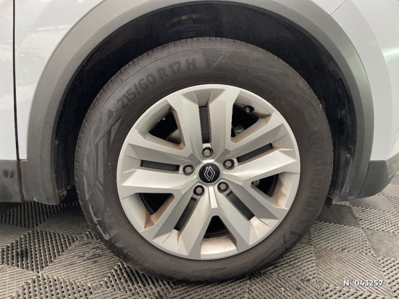 Système ISOFIX (i-Size) aux places latérales AR et passager AV / Antenne requin / Eclairage AV et AR Full LED Pure Vision / Coques de rétroviseurs noir/teinte caisse / Sans pontets AR / Kit de gonflage et de réparation des pneumatiques / Alerte oubli des ceintures de sécurité aux 5 places / Alerte distance de sécurité - Information dans tableau de bord / Feux AR LED avec signature en forme de "C" / Appel d'Urgence Renault / Condamnation centralisée des portes avec télécommande et condamnation des portes en roulant / Répétiteurs latéraux de changement de direction / Harmonie beige / Contrôle de la traction (TCS) / Boîte de vitesse manuelle 6 rapports / Ceinture centrale AR 3 points / Peinture mono-ton / Indicateur de changement de vitesse / Hayon manuel / Poignées de portes ton caisse / Console centrale de rangement avec accoudoir / OpenR link 10,4?? access display audio avec tableau de bord avec écran numérique et personlisable 7" / Alerte sortie de voie / Enjoliveurs 17'' Nymphea / Volant en tissus / Alerte détection de fatigue / Liseuses LED / Badges noir brillant